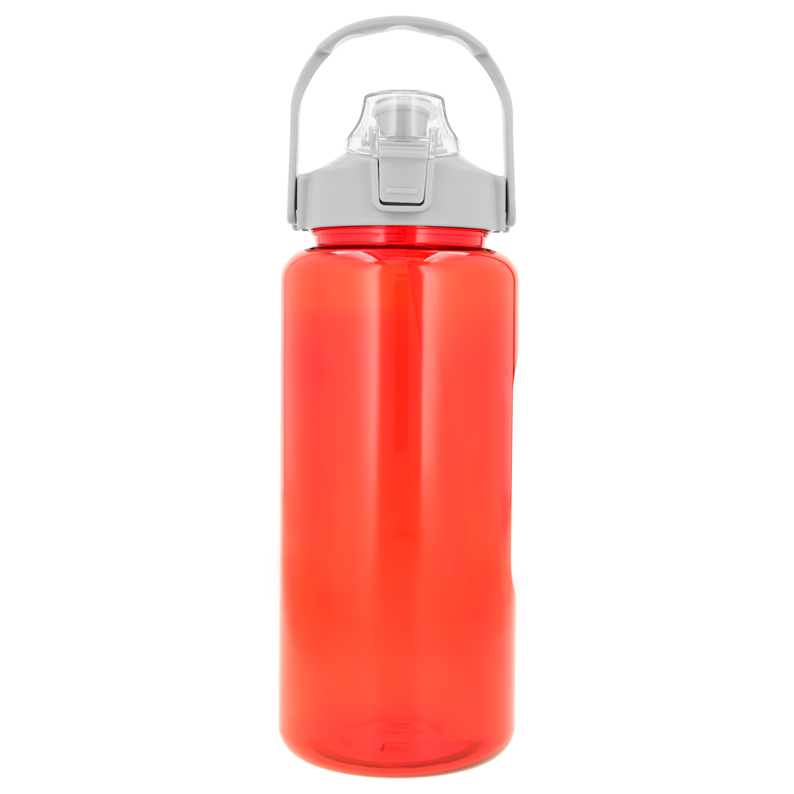 Cilindro de plástico con tapa de seguridad, popote y asa.