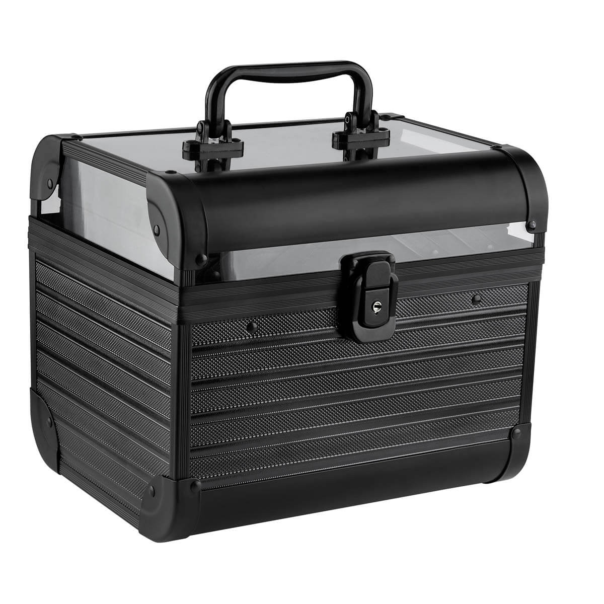 Neceser maletín multifuncional reforzado. Organiza todos tus productos de belleza de manera eficiente. Gracias a su diseño expandible, incluye 4 charolas; una especial para joyería. Cierre con broche metálico, incorpora una cerradura con llave para mantener el acceso controlado. Asa superior para utilizarla en casa o para viajar.