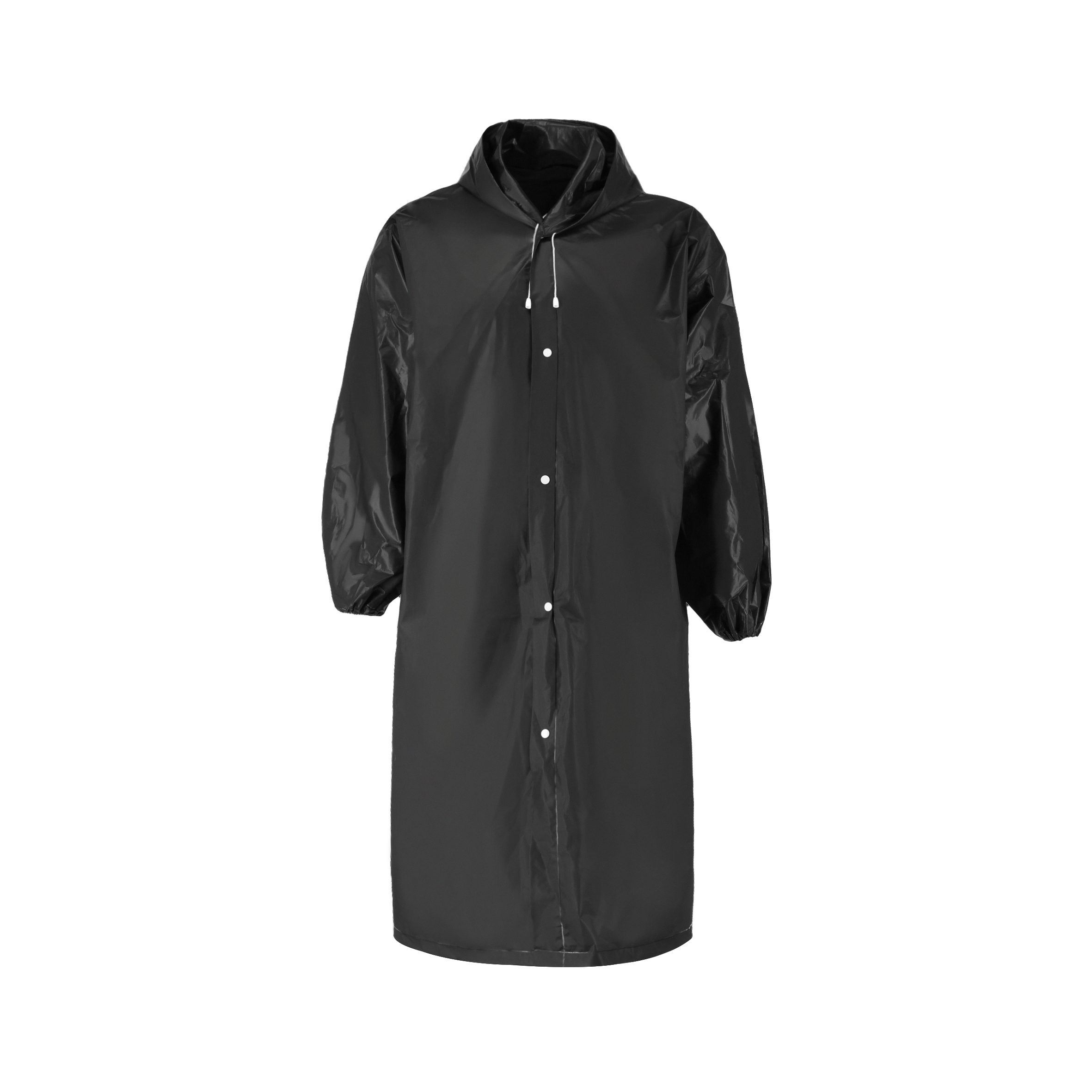 Impermeable de plástico con botones, capucha y resortes en las mangas. (Espesor de 0.12 mm.)