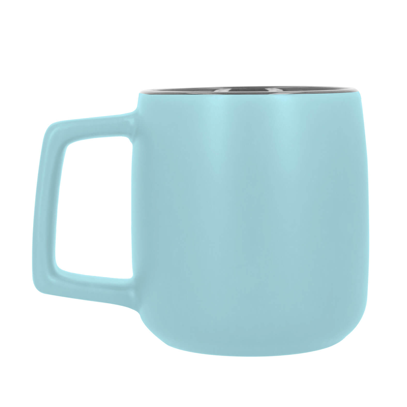 Taza de cerámica con acabado mate y asa rectangular.