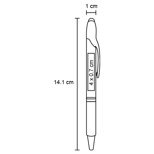 Bolígrafo con acabado rubber, clip de plástico, goma touch screen, mecanismo retráctil y marca textos.