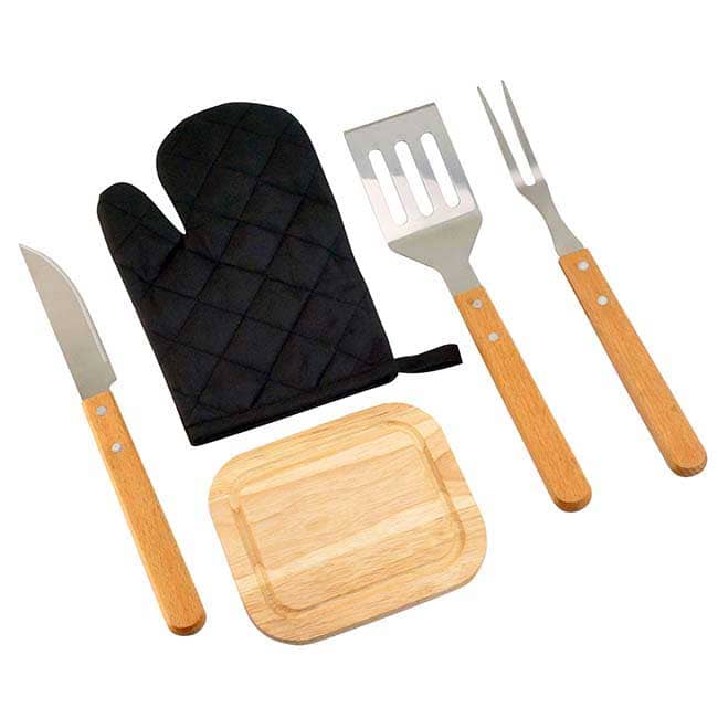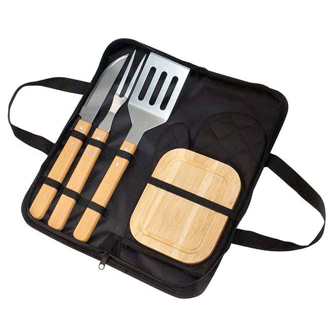 • Estuche completo para asados, practico y facil de transportar gracias a su cierre y asas.