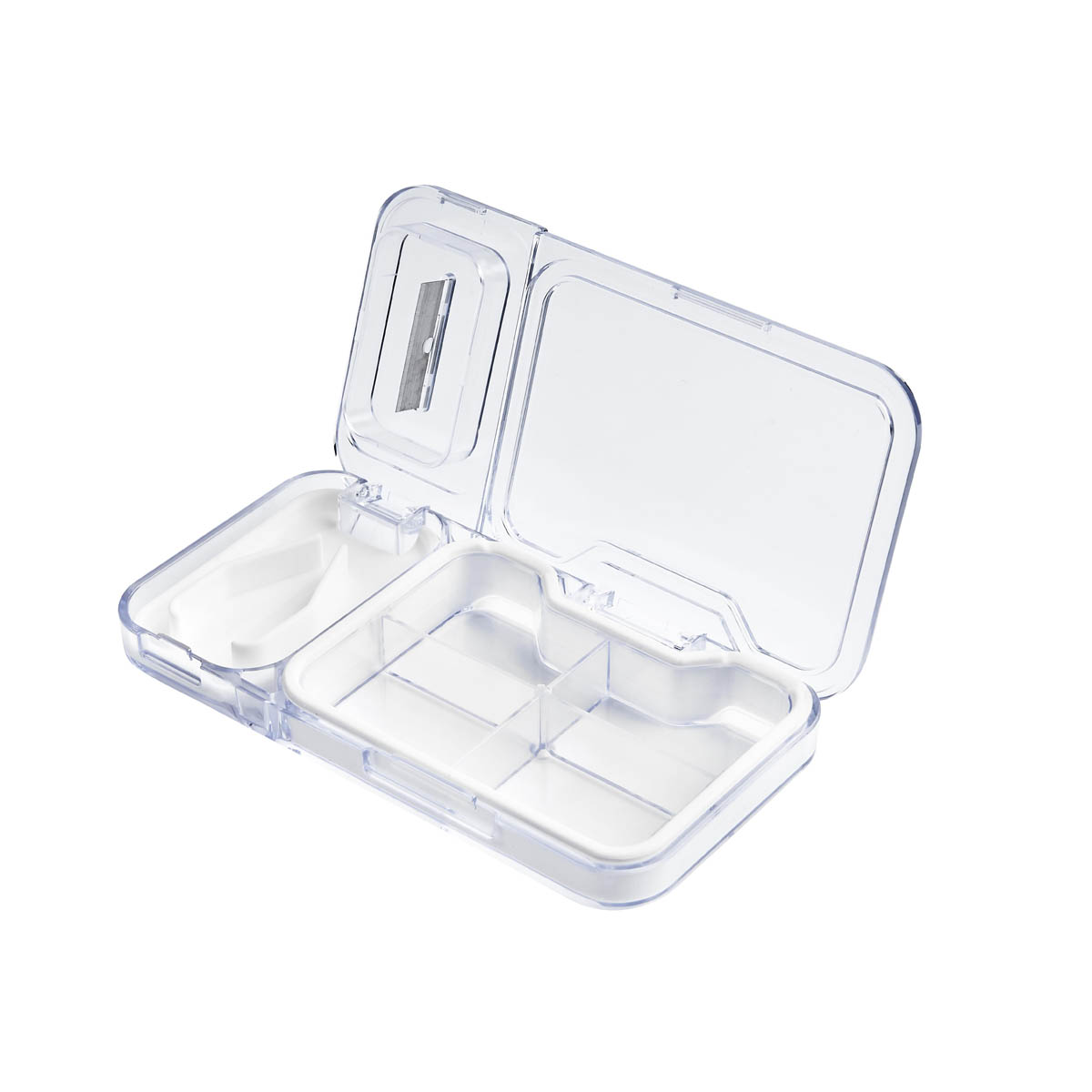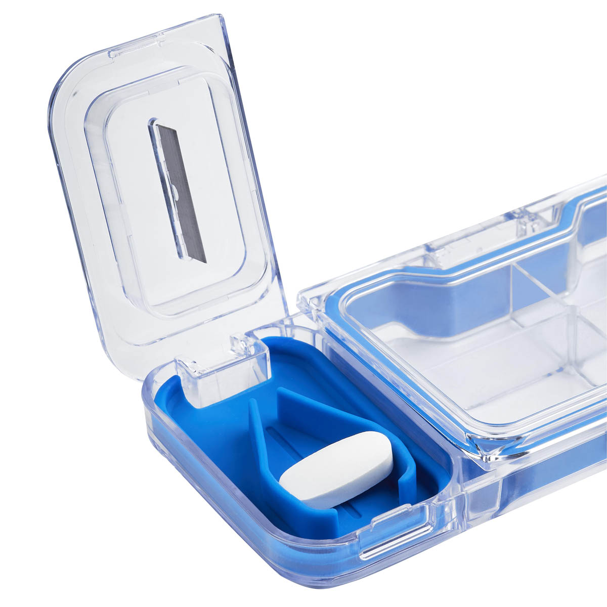 Pastillero con cortador integrado que permite dividir tus pastillas de manera segura y precisa. Además, sus cuatro compartimentos ofrecen un espacio óptimo para organizar tus dosis de manera sencilla y eficiente. Compacto y portátil, es ideal para llevar en el bolso, en la oficina o durante tus viajes.