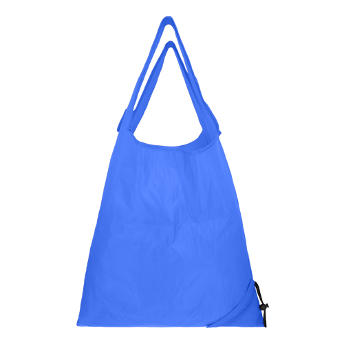 Bolsa de poliéster con funda plegable integrada, asas y correa ajustable.