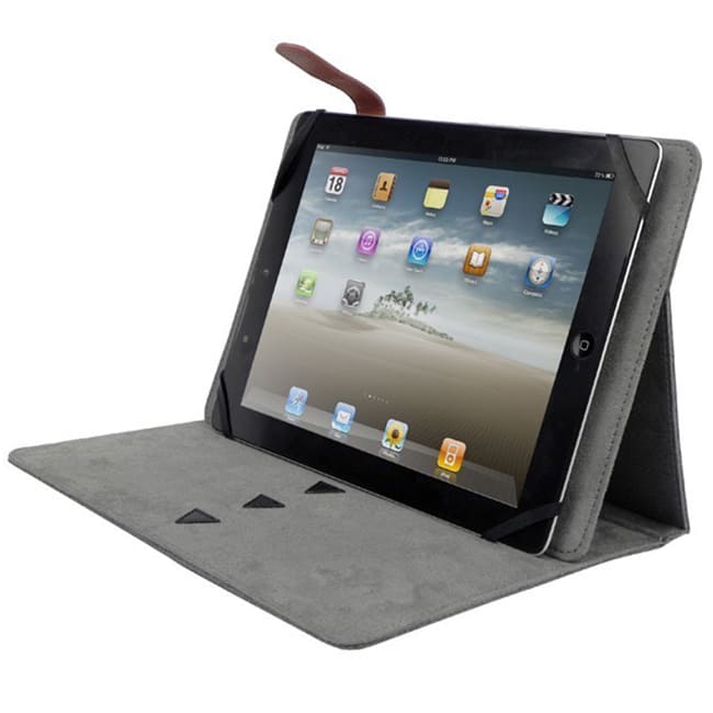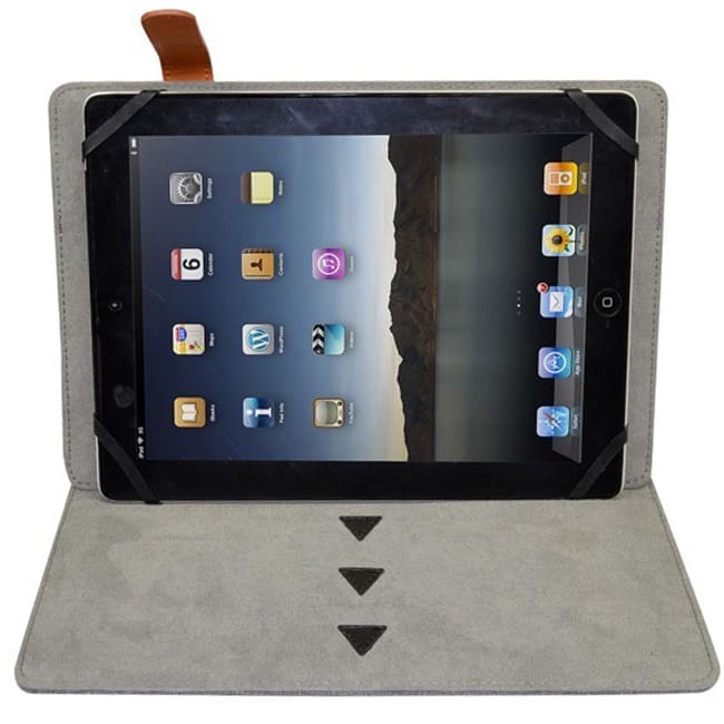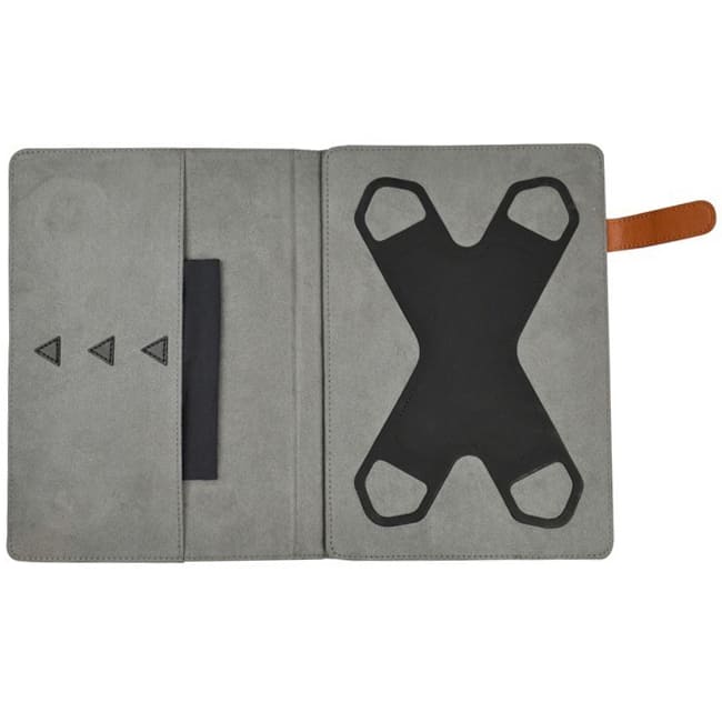 Funciones: Con cincho para cierre y placa para personalizar. Stand para I-Pad. Incluye tela microfibra.