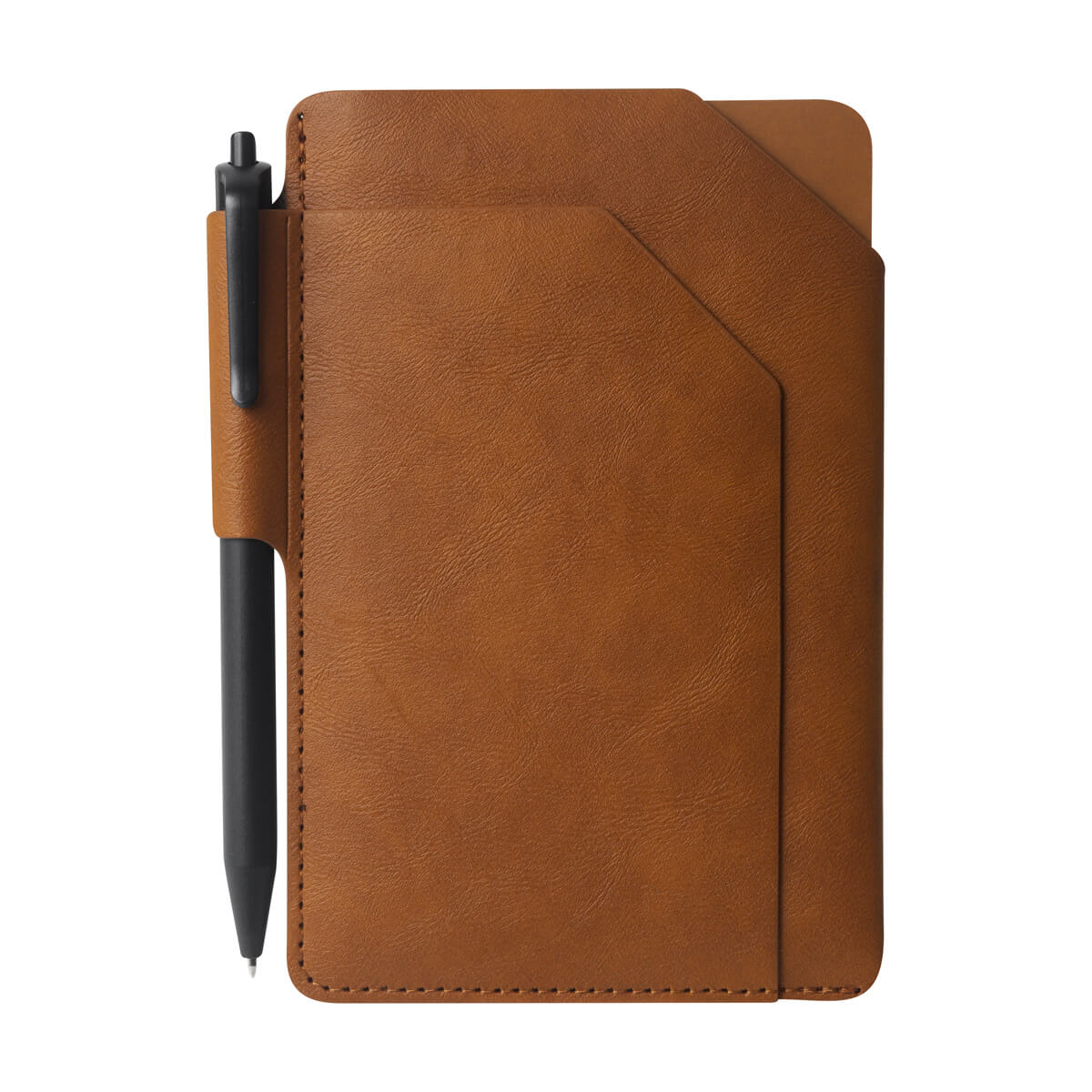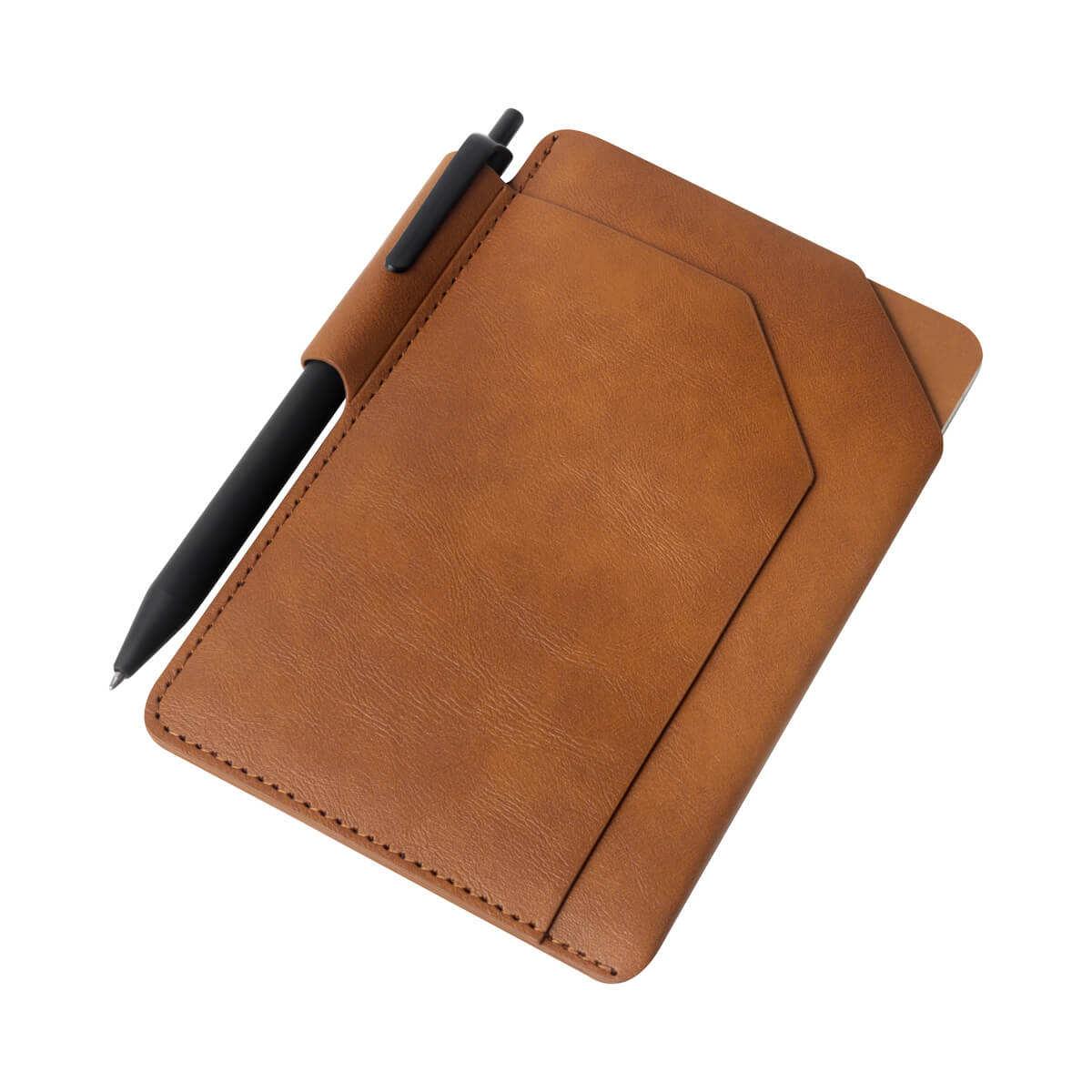 Funda de curpiel para pasaporte. Incluye un libreta de 32 hojas a raya, un bolígrafo de tinta negra y un práctico compartimento para tu pasaporte. Ideal para viajes y notas rápidas.