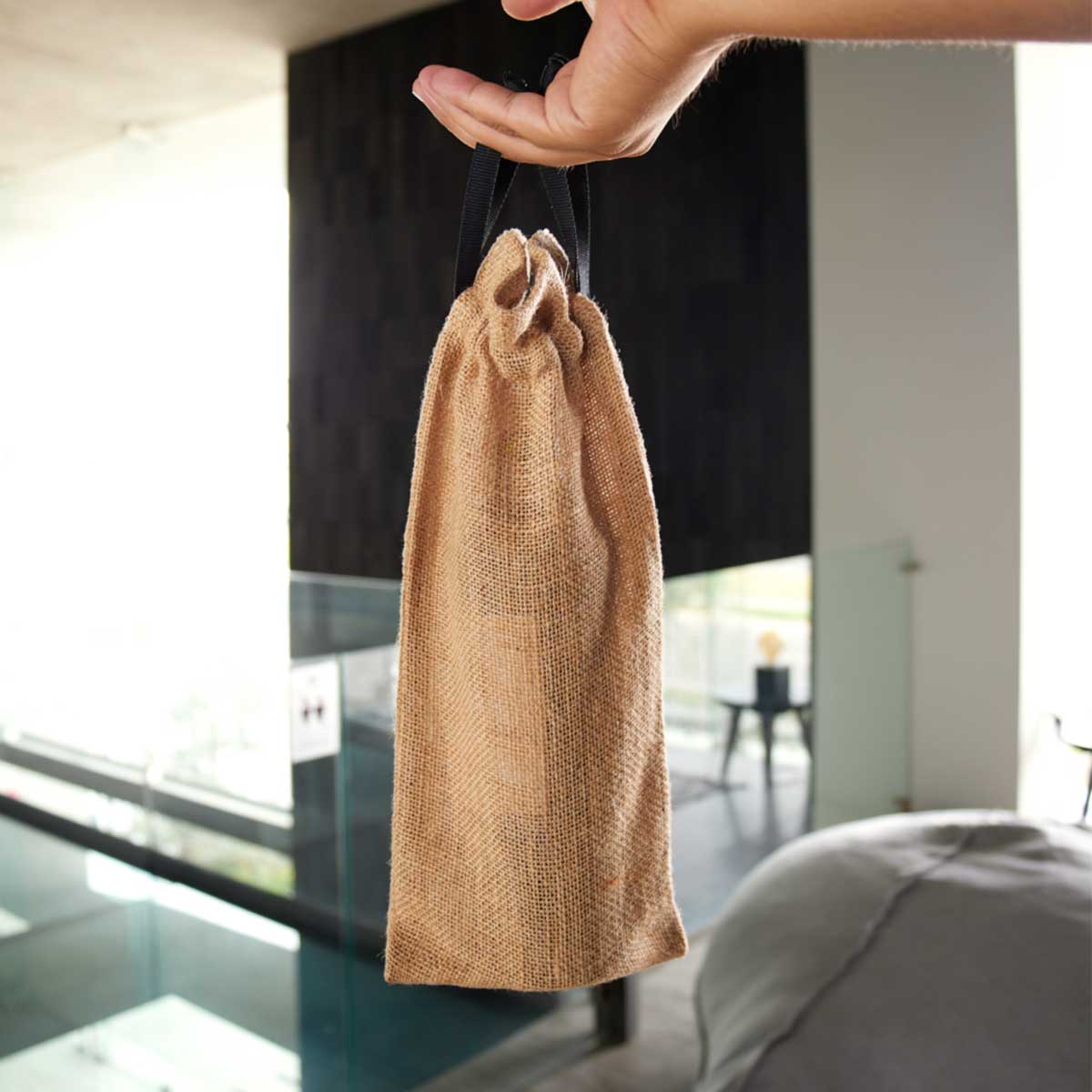 Bolsa de regalo para 1 botella de vino. Jareta de listón integrada.