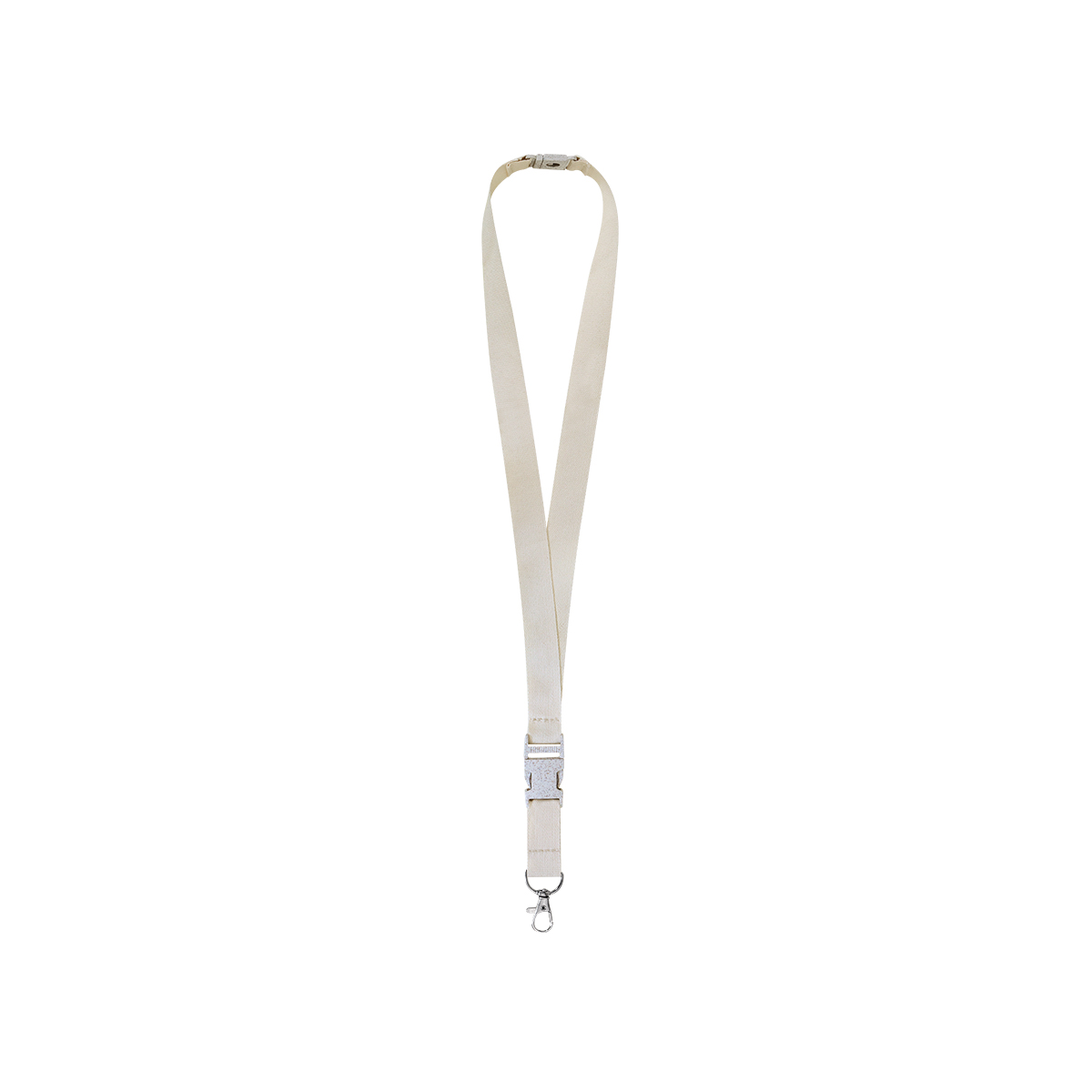 Fabricado con materiales eco amigables. Incluye broche de seguridad, clip desmontable y gancho metálico con giro de 360°.