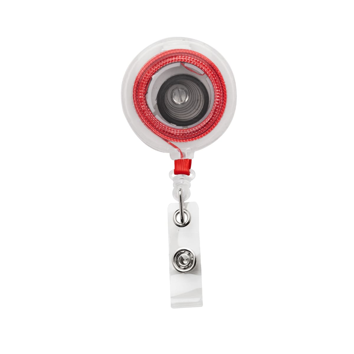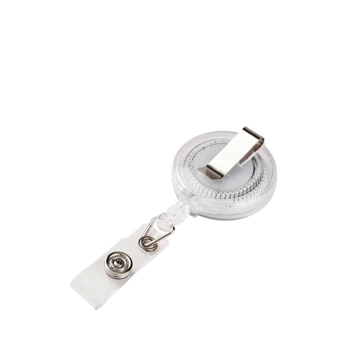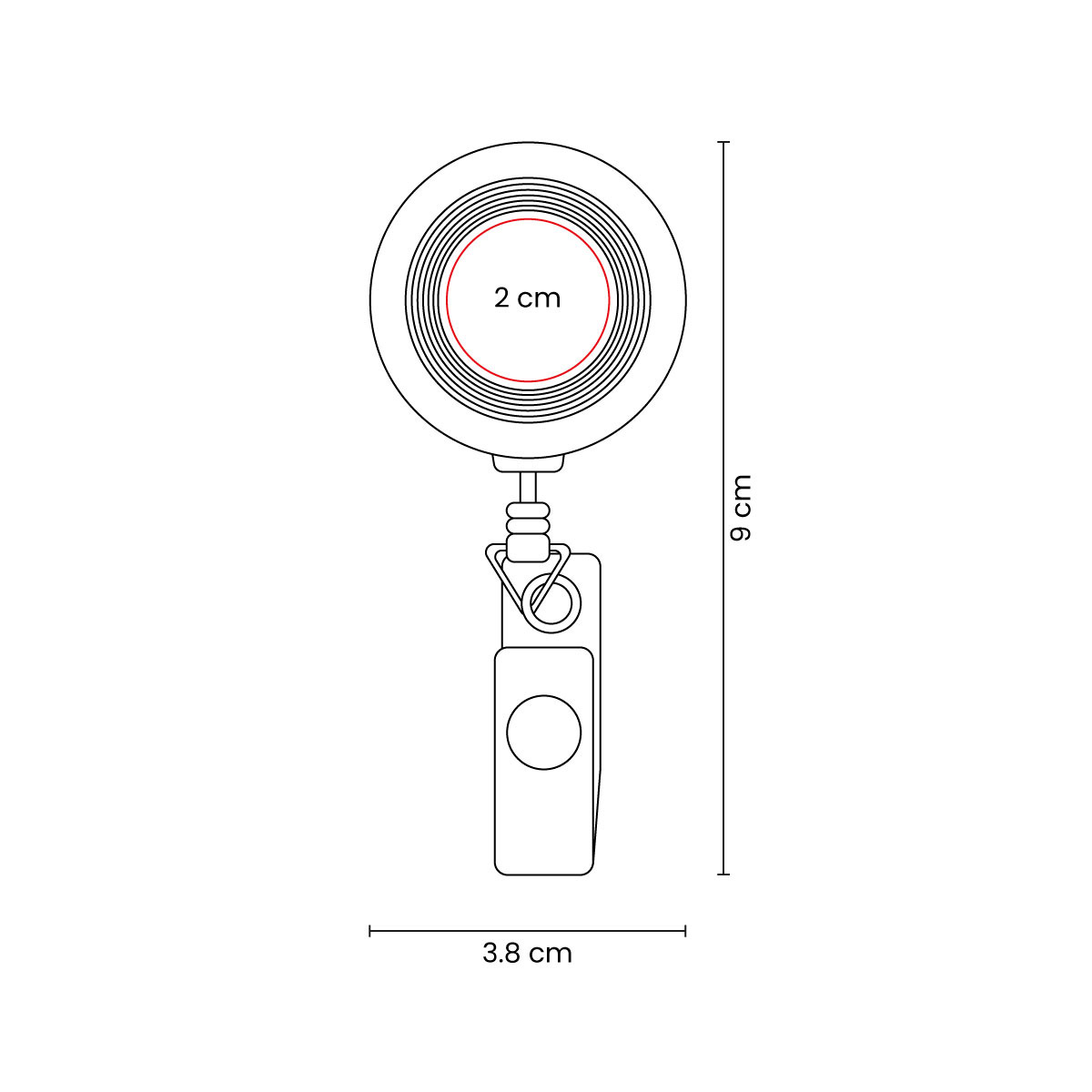 Porta gafete retráctil con clip sujetador. Incluye flexómetro de 100 cm.