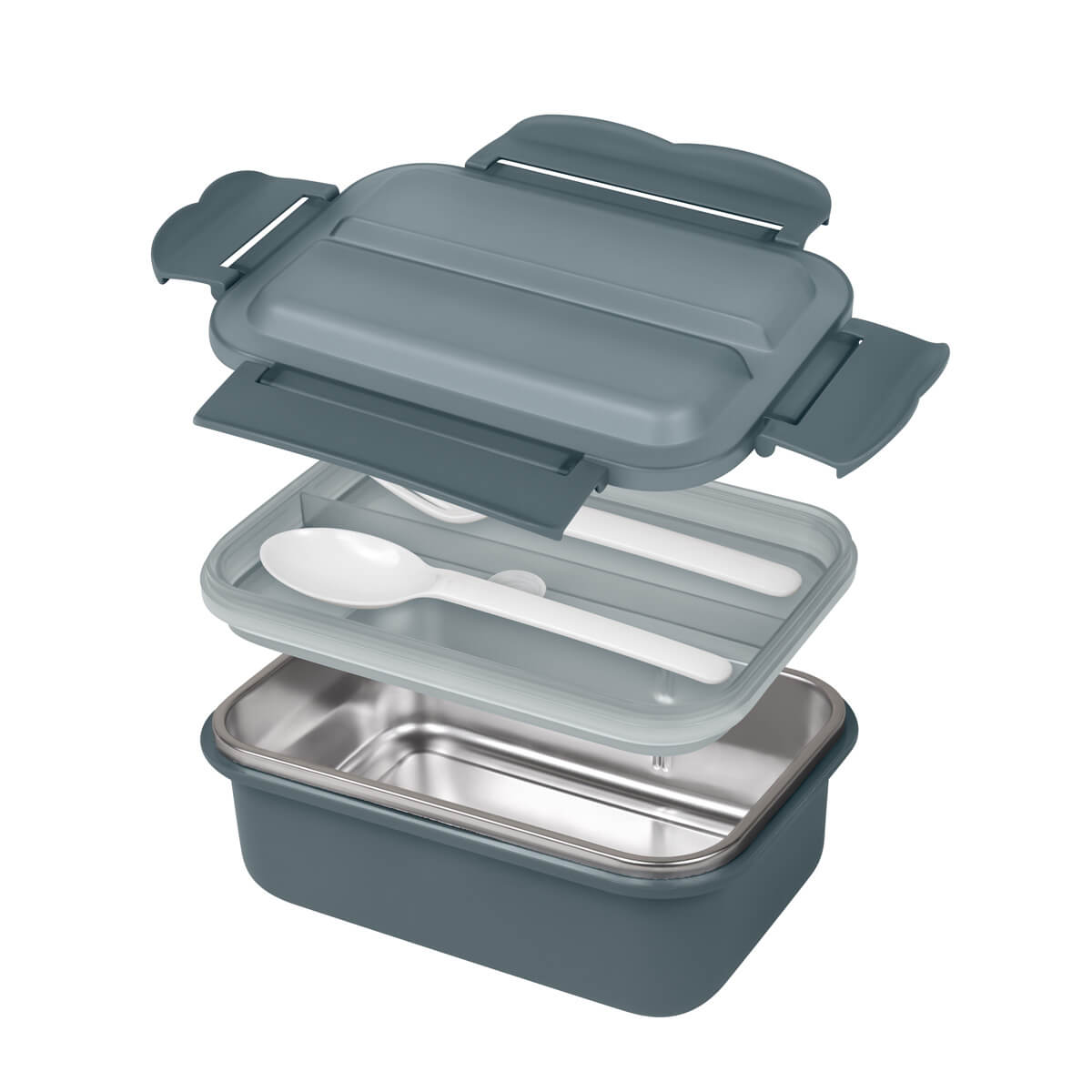 Contenedor térmico de doble pared. Pared interna de acero inoxidable, Pared externa de plástico. Tapa con cierre hermético y válvula para alimentos calientes. Incluye cuchara y tenedor de plástico. Permite lavado en lavavajillas. No apto para microondas. Caja individual.