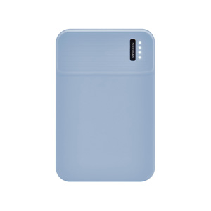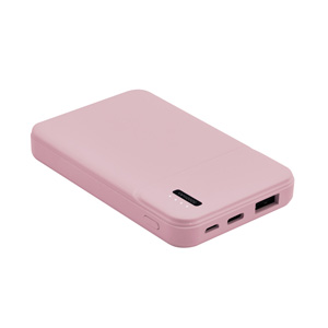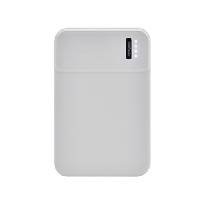 Batería auxiliar para smartphone, capacidad 5,000 mAh. Incluye 1 puerto de salida USB para carga de dispositivos y 2 puertos de entrada: 1 micro USB y 1 tipo C exclusivo para recarga de la batería (no carga dispositivos). Incluye 4 LEDs indicadores de carga y cable micro USB.