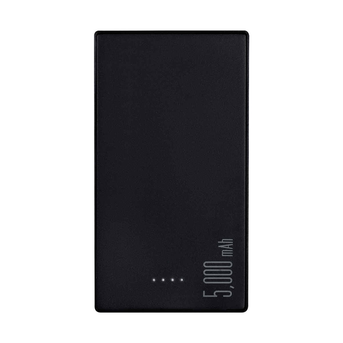 Batería auxiliar para smartphone, capacidad 5,000 mAh. Diseño ultra delgado. Contiene 1 puerto de entrada/salida tipo C, compatible para carga de dispositivos y recarga de la batería, 1 puerto de salida USB para carga de dispositivos. Incluye display indicador de carga, cable con conector tipo C y caja individual.