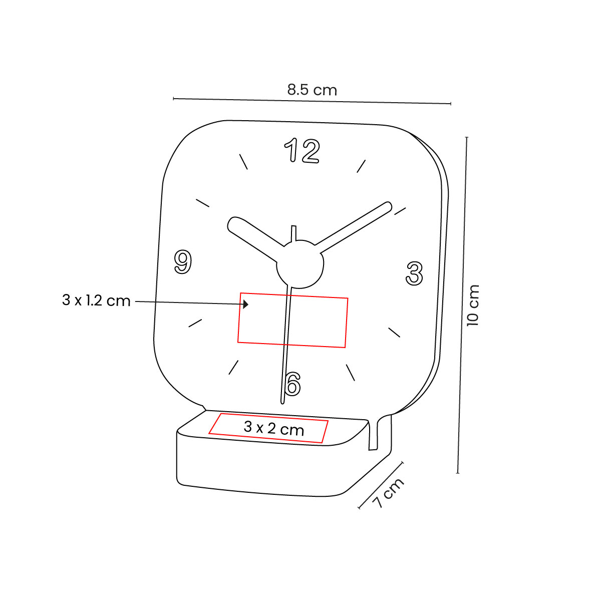 3 x 1.2 cm Reloj / 3 x 2 cm Base