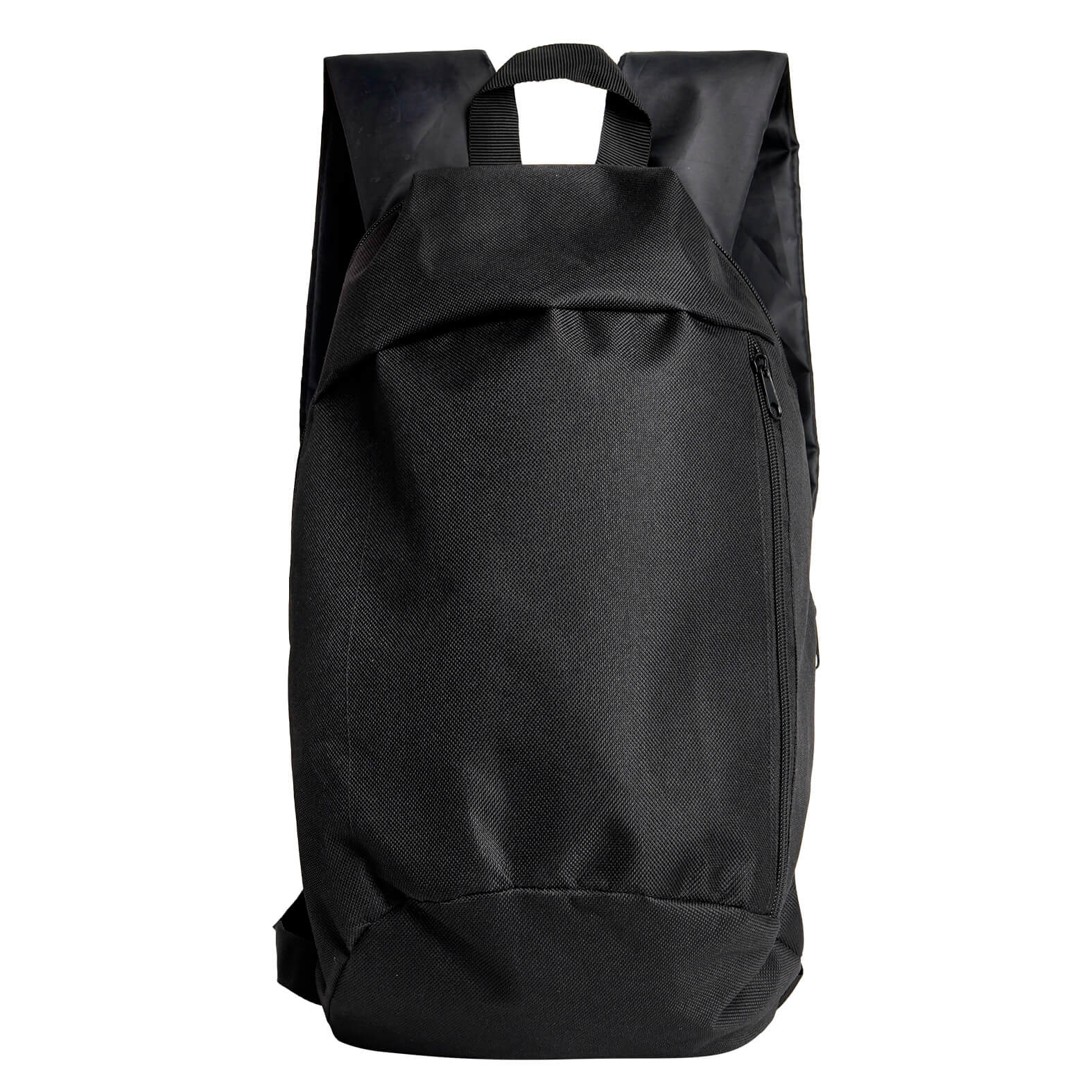 Mochila con compartimento principal, bolsa frontal vertical, asa superior y tirantes con correas ajustables.