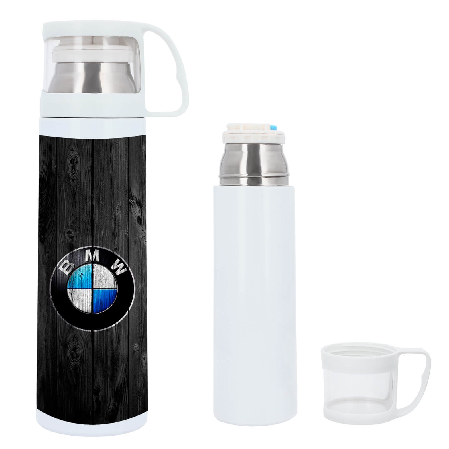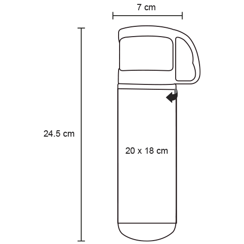 Termo sublimable de acero inoxidable insulado al vacío con boquilla enroscable. Incluye tapa que sirve como taza.