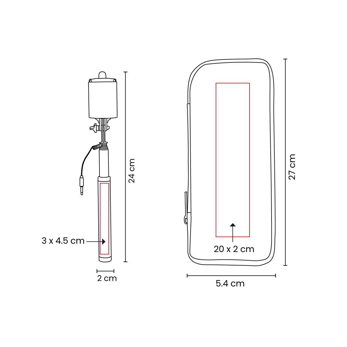 Selfie stick con cable y botón para tomar fotos. Conector de 3.5 mm compatible con la entrada de audio del smartphone. El mango cuenta con batería auxiliar desmontable de 2,200 mAh. Extensión telescópica para mayor ángulo de foto. Ranura anti-giro. No requiere baterías. Compatible con dispositivos Android 4.2.2 / iOS 5.0.1 o superior. Mide 68 cm extendido aproximadamente. Mecanismo ajustable para smartphones de 6 a 8 cm de ancho. Incluye estuche. Este producto por ser últimas piezas puede presentar alguna variación, no se aceptan devoluciones.