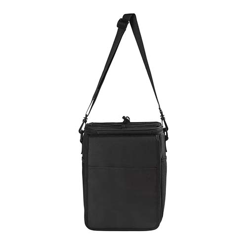 Bolsa principal con función de hielera. Capacidad para 12 latas. Incluye bolsa frontal con 3 compartimentos internos para el set de cuchillo, espátula y tenedor. 2 Bolsas laterales de red y correa ajustable.