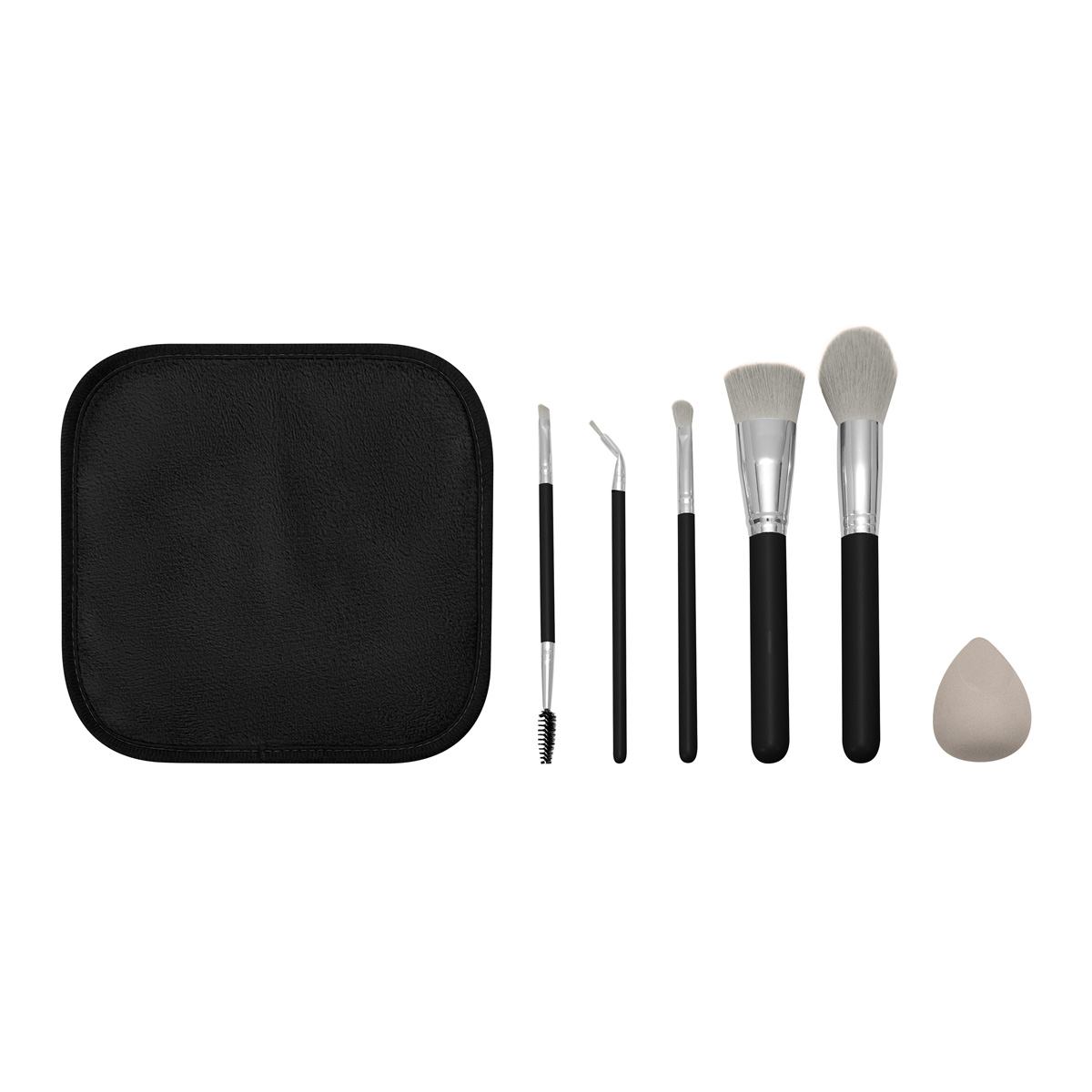 Set de maquillaje con 7 accesorios esenciales para realzar tu belleza. Incluye un elegante estuche y todo lo que necesitas para lograr un look perfecto: brochas para base en polvo, rubor, sombra, delineador de ojos y labios, esponja para base de maquillaje, y una suave toalla para limpieza facial. El set ofrece una solución completa para tu rutina de belleza, asegurando que siempre estés lista para cualquier ocasión.