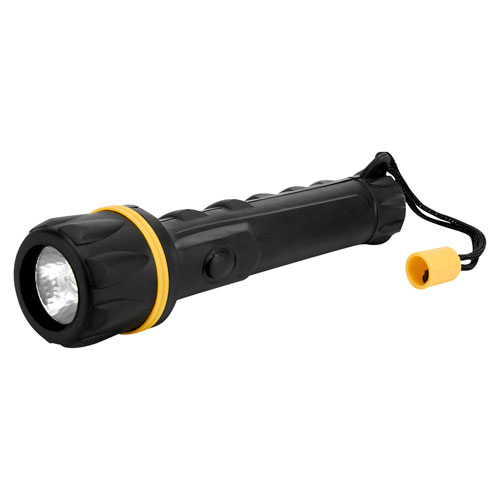 Contiene cables pasa corriente, bomba manual para gasolina, linterna con 2 baterías AA (incluidas), poncho de plástico y funda con triángulo reflejante.