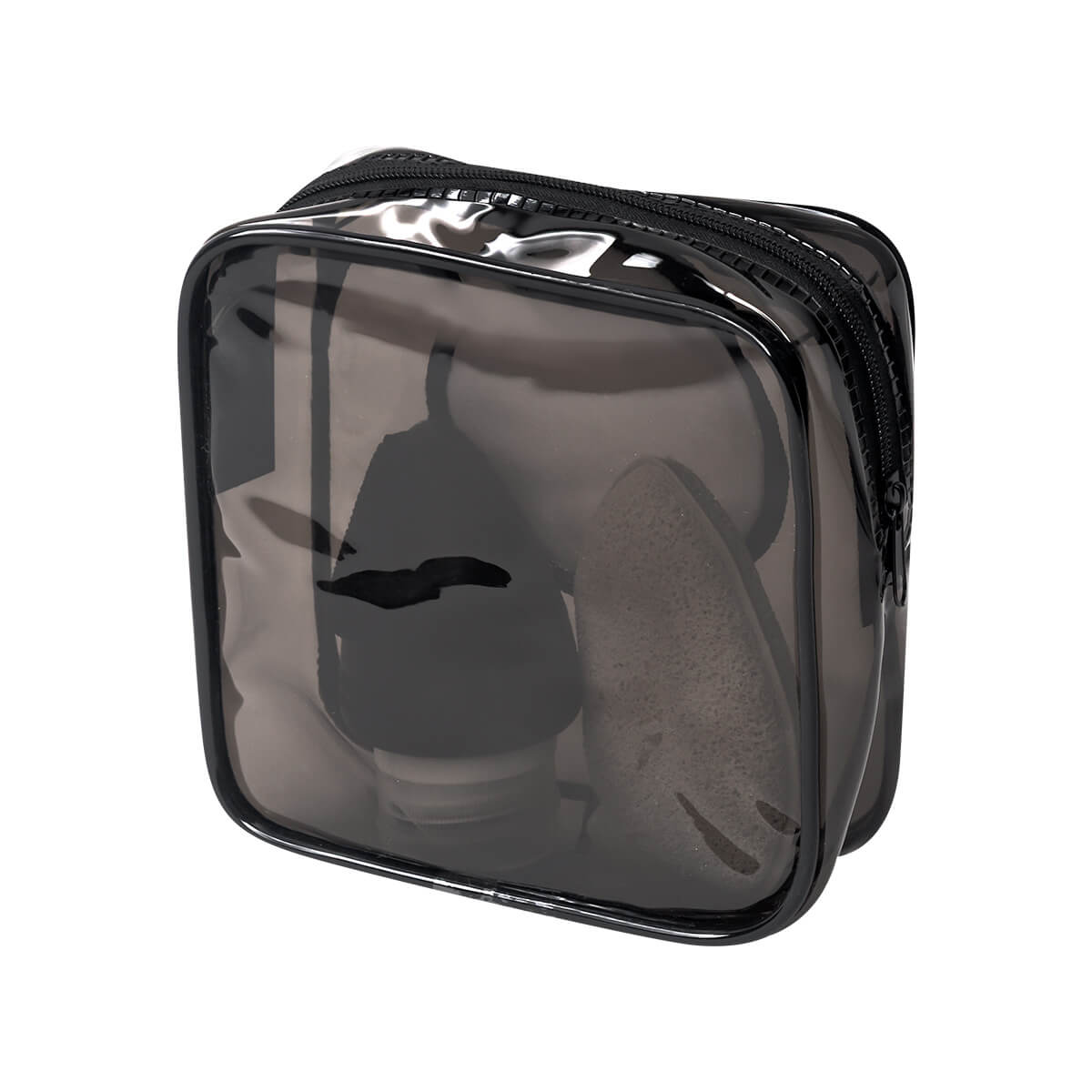 Set de limpieza facial compacto y versátil. Incluye esponja, pad limpiador y botella de silicón de 60 ml con cepillo integrado. Todo presentado en un estuche de PVC transparente, perfecto para viajar y mantener tu rutina organizada.