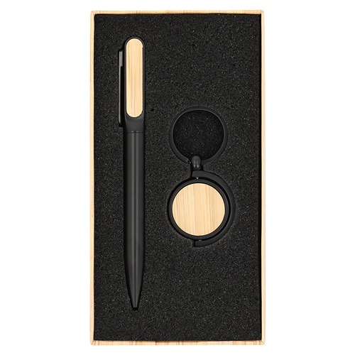 Set de oficina con bolígrafo, llavero y estuche. Bolígrafo con mecanismo twist.