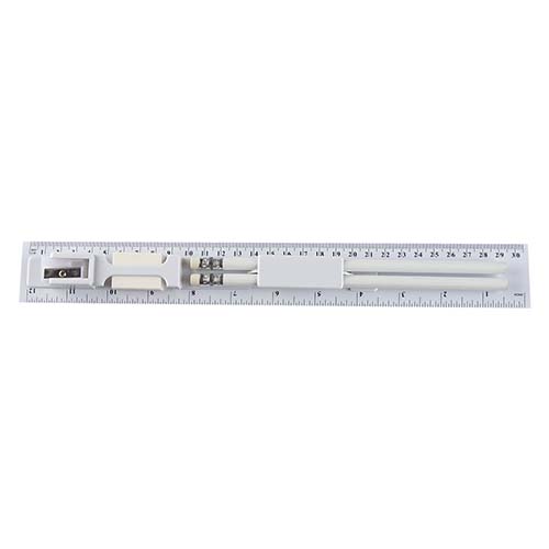 Incluye 2 lápices, 1 borrador, 1 sacapuntas y regla de 30 cm.