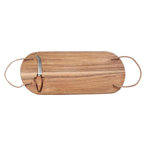 Tabla con asas. Incluye 1 cuchillo para quesos. La madera es un producto natural el cual puede presentar variaciones en tonalidades y vetas.