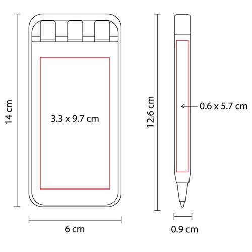 | Área de Impresión | 0.6 x 5.7 cm Bolígrafo / 3.3 x 9.7 cm Estuche |