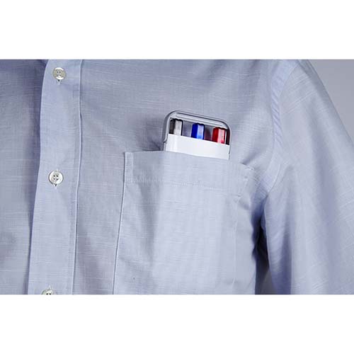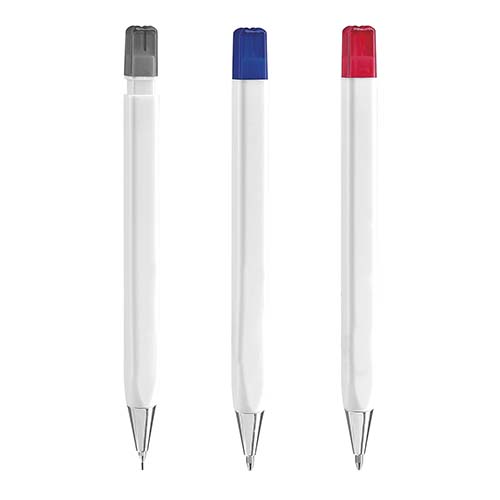 Incluye lapicera 0.5 mm y bolígrafos tinta azul y roja.
