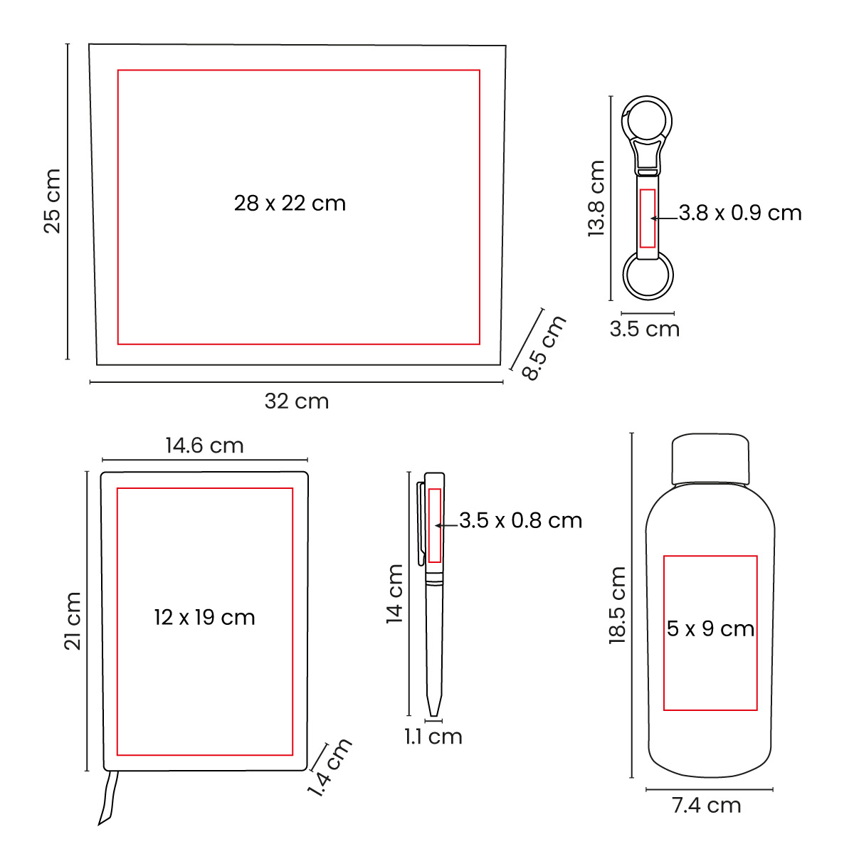 Set de regalo corporativo de 4 piezas. Incluye libreta de pasta blanda con 96 hojas a raya y listón separador, bolígrafo metálico con sistema twist, llavero de doble aro metálico con cinta de curpiel y termo de acero inoxidable de doble pared cerrado al vacío, terminado rubber que lo hace suave al tacto. Incluye caja rígida de regalo.