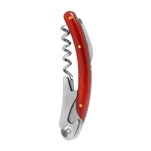 Incluye sacacorchos con navaja y destapador, stopper, boquilla, arillo y estuche con espacio para almacenar una botella (no incluida).