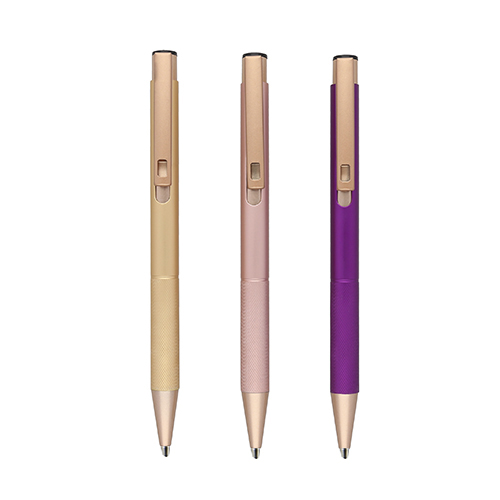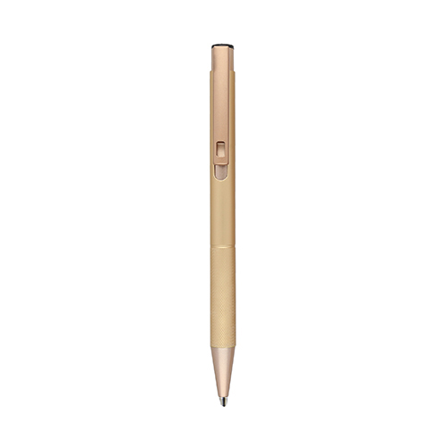 Bolígrafo de aluminio con detalles en el clip y grip, con mecanismo de click.