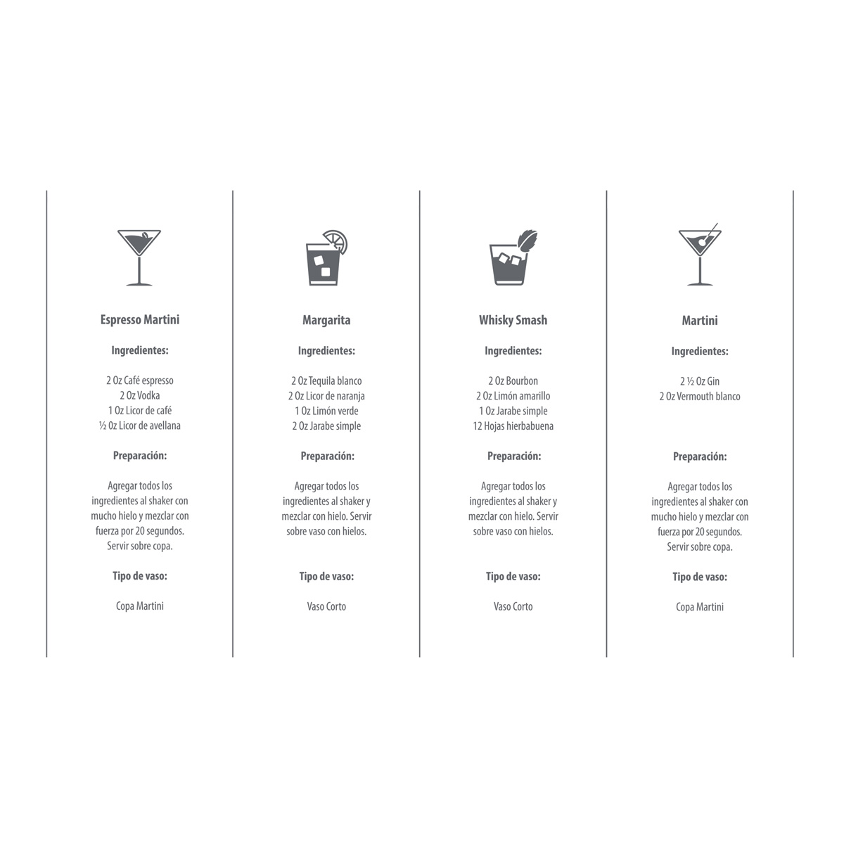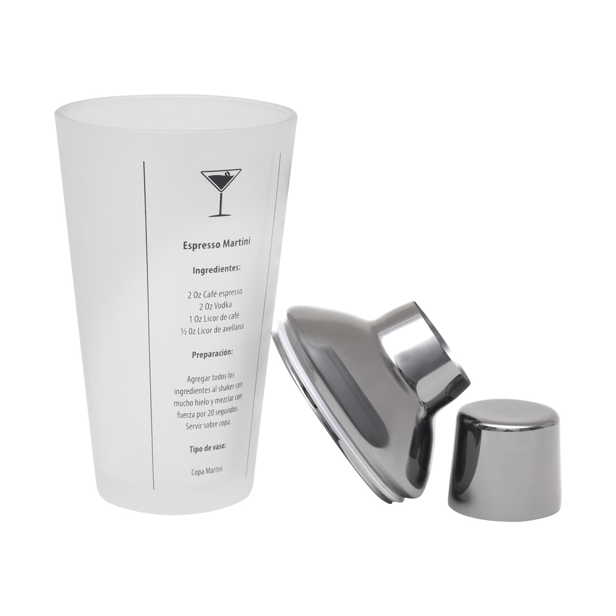 Shaker de cristal con 4 recetas incluidas. Conviértete en el barman perfecto con este shaker diseñado para facilitar la preparación de cócteles profesionales en casa, guiándote paso a paso para crear bebidas como un experto. Podrás preparar un expresso martini, margarita, whisky smash o martini. Incluye caja individual.