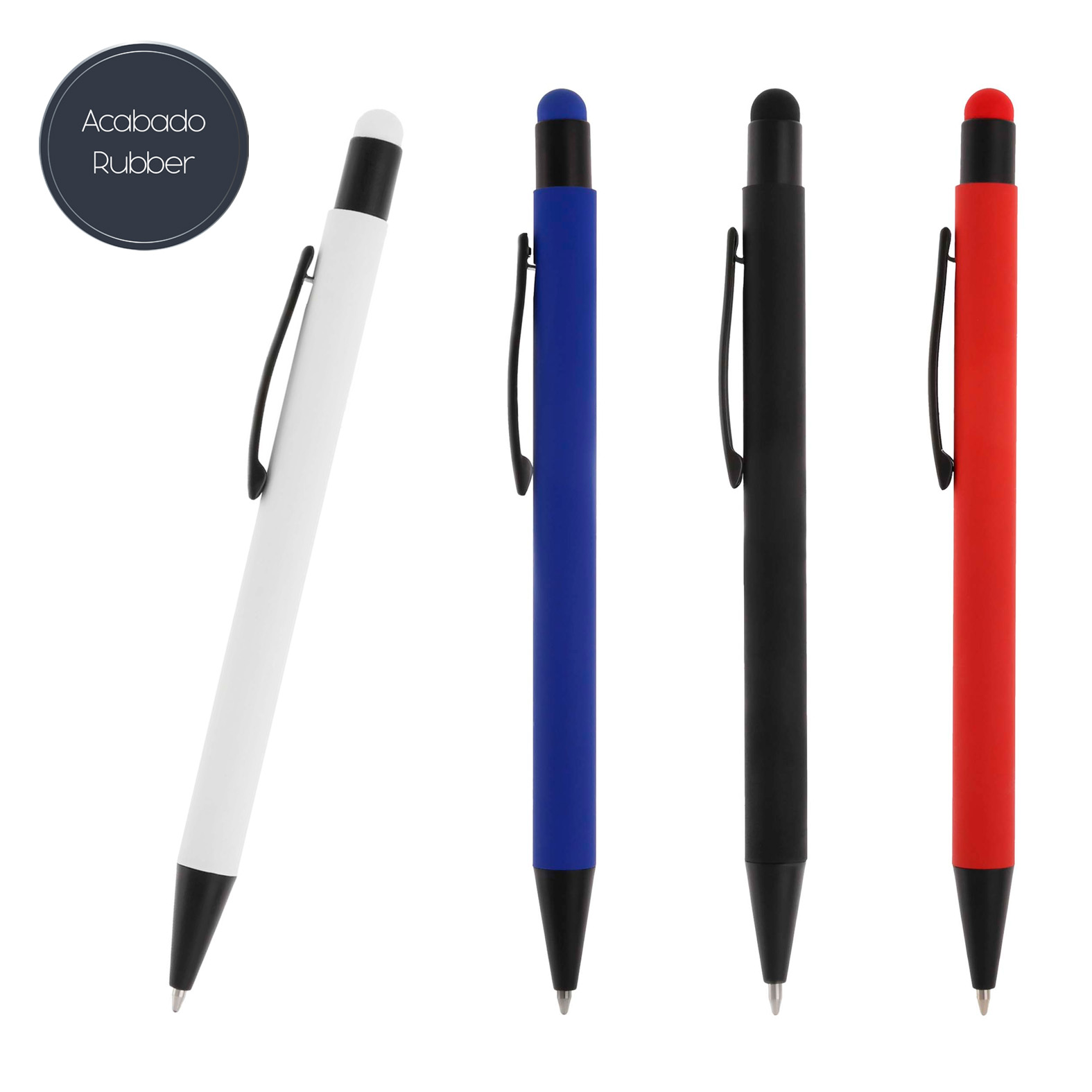 Bolígrafo metálico con acabado rubber, mecanismo de click y goma touch screen.