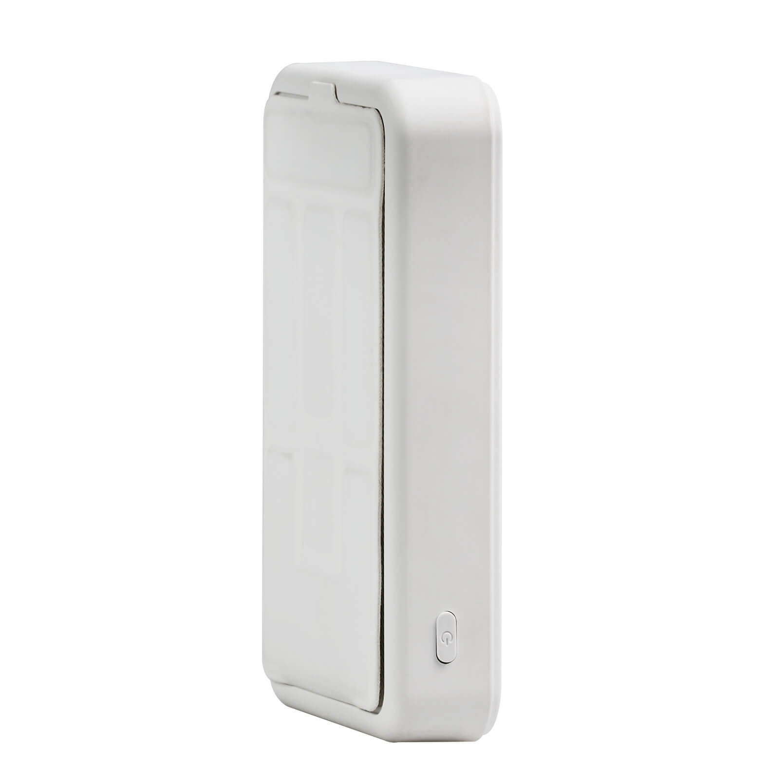 Power Bank inalámbrico de 10,000 mAh con acabado rubber y soporte plegable. Cuenta con una entrada USB, una Micro USB, una Tipo C y una Lightning. (Compatible con dispositivos con tecnología Qi).