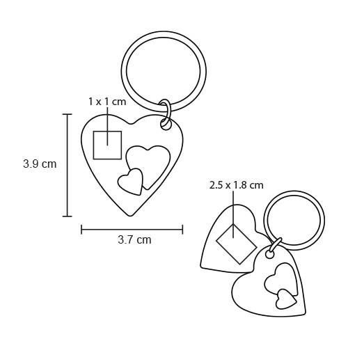 Llavero metálico doble en forma de corazón, placa sólida y silueta, con arillo reforzado para colgar.