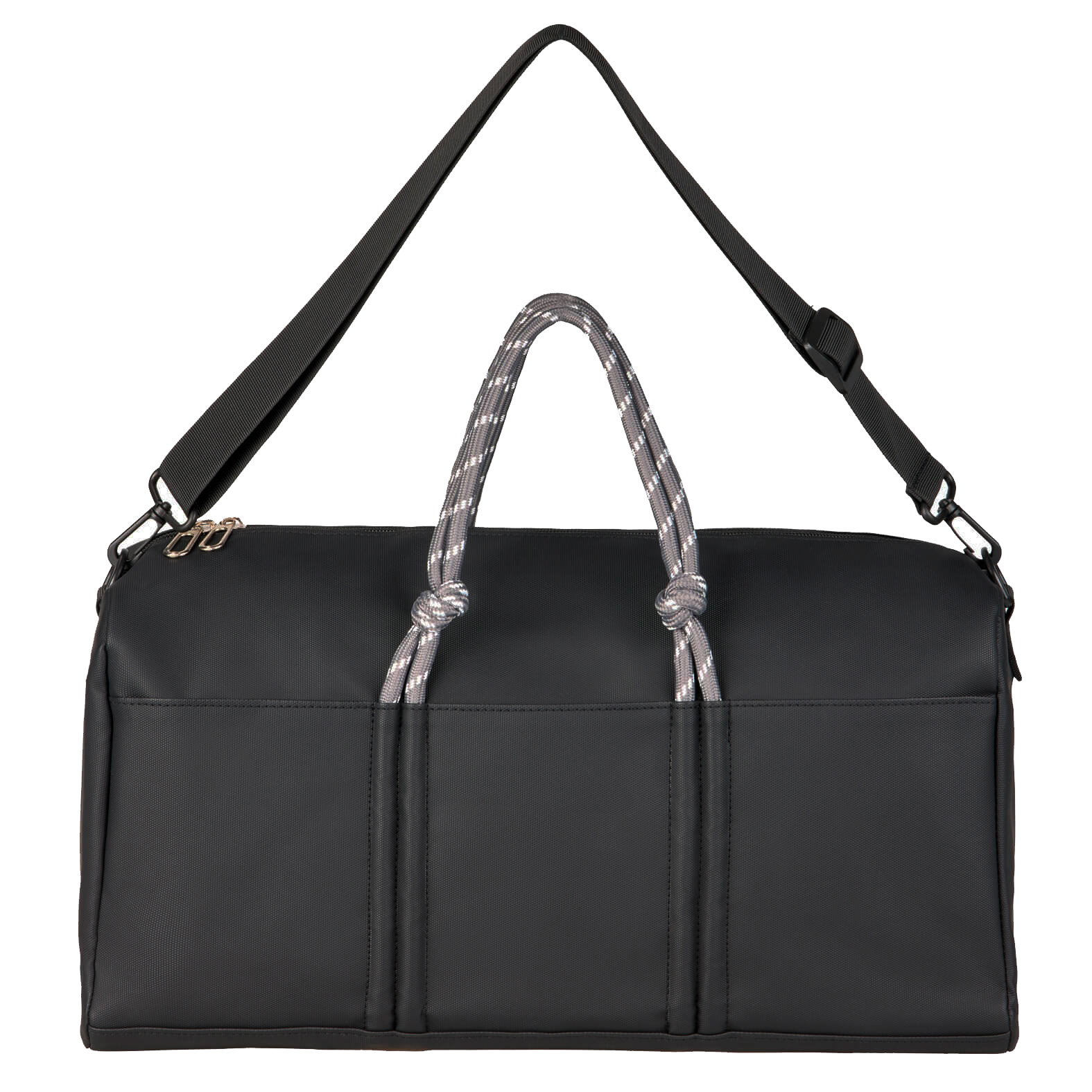 Maleta deportiva con compartimento principal, bolsillo interno con cierre, bolsa frontal, dos bolsillos laterales y correa ajustable.