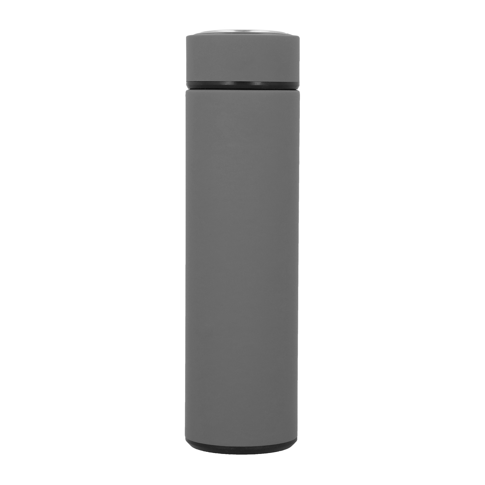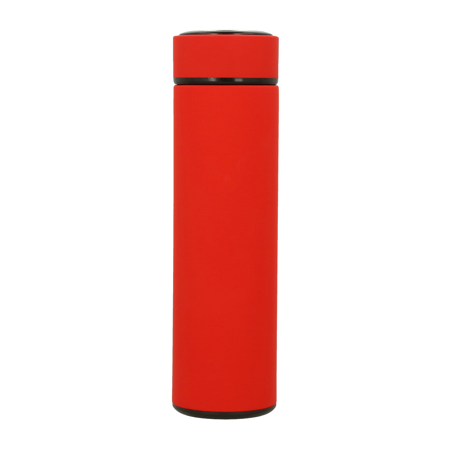Termo de acero inoxidable de doble pared insulado al vacío, incluye un filtro infusor y acabado rubber.
