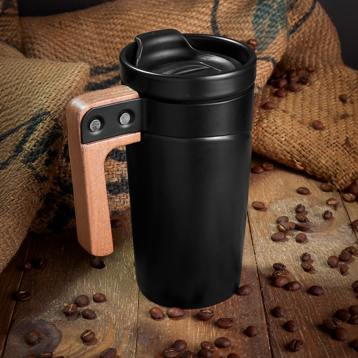 Taza de cerámica con asa de madera. Tapa de plástico con válvula de seguridad. Incluye caja individual. No usar en microondas ni lavavajillas. La madera es un producto natural el cual puede presentar variaciones en tonalidades y vetas. Este producto por ser últimas piezas puede presentar alguna variación, no se aceptan devoluciones.