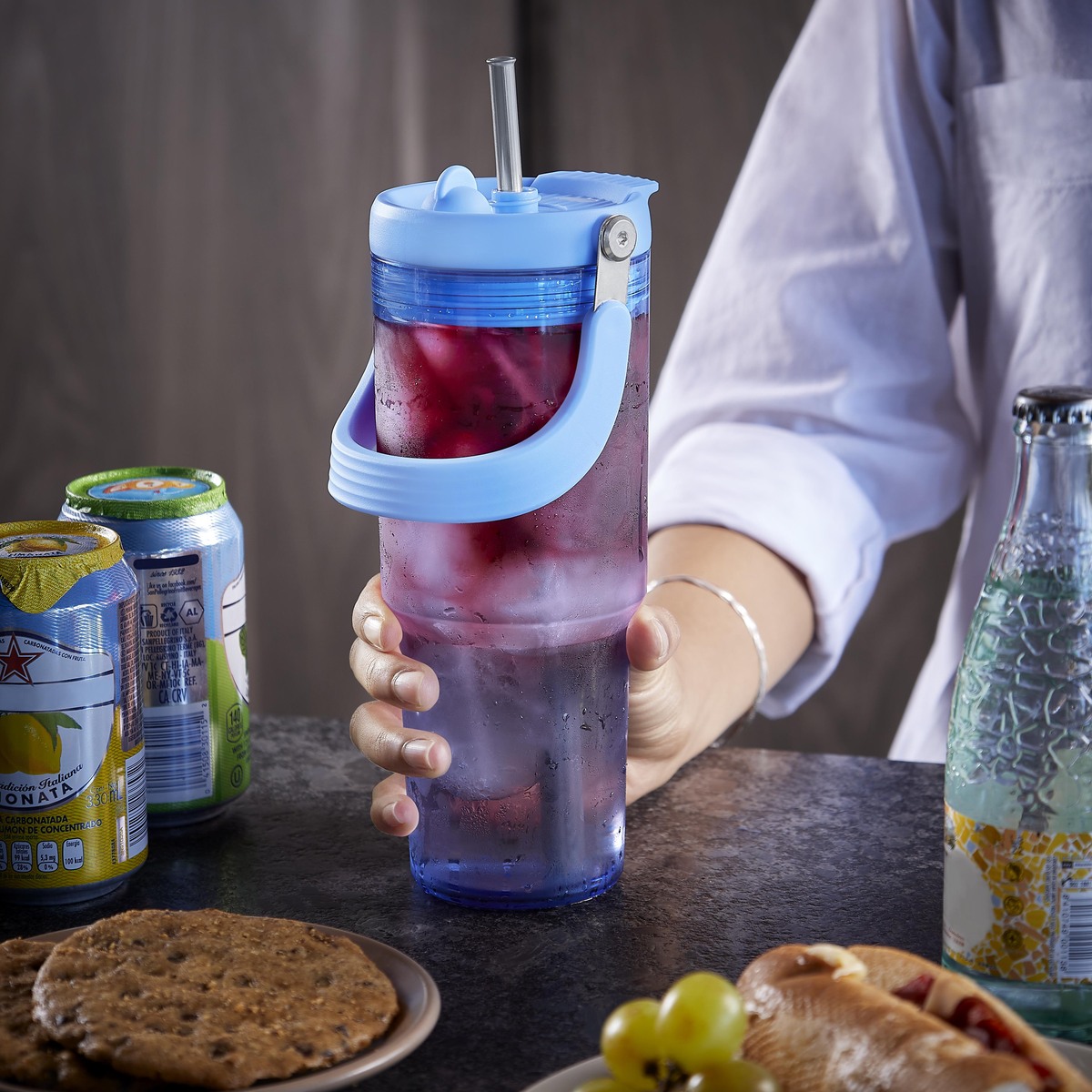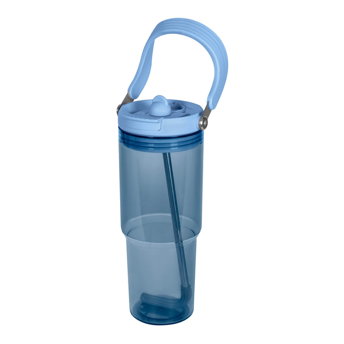 Termo de plástico de una pared. Incluye tapa con cierre de rosca que ofrece dos alternativas de uso, sobre tapa con sistema push y ranura especial para popote con aditamento para cerrar y evitar derrames. Incluye popote metálico que cuenta con un mecanismo de salida automática y una base de silicón, que lo eleva al abrir el compartimento. Además, su práctica asa plegable, permite llevarlo cómodamente a cualquier lugar. Capacidad 28 Oz. Base de 7 cm de diámetro. Incluye caja individual.