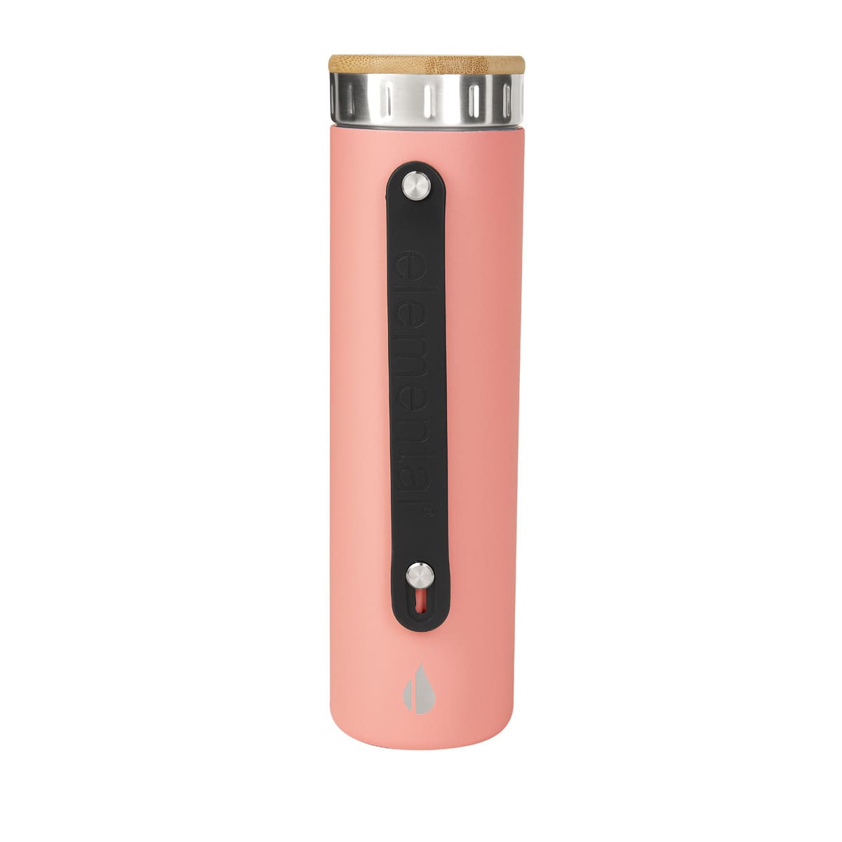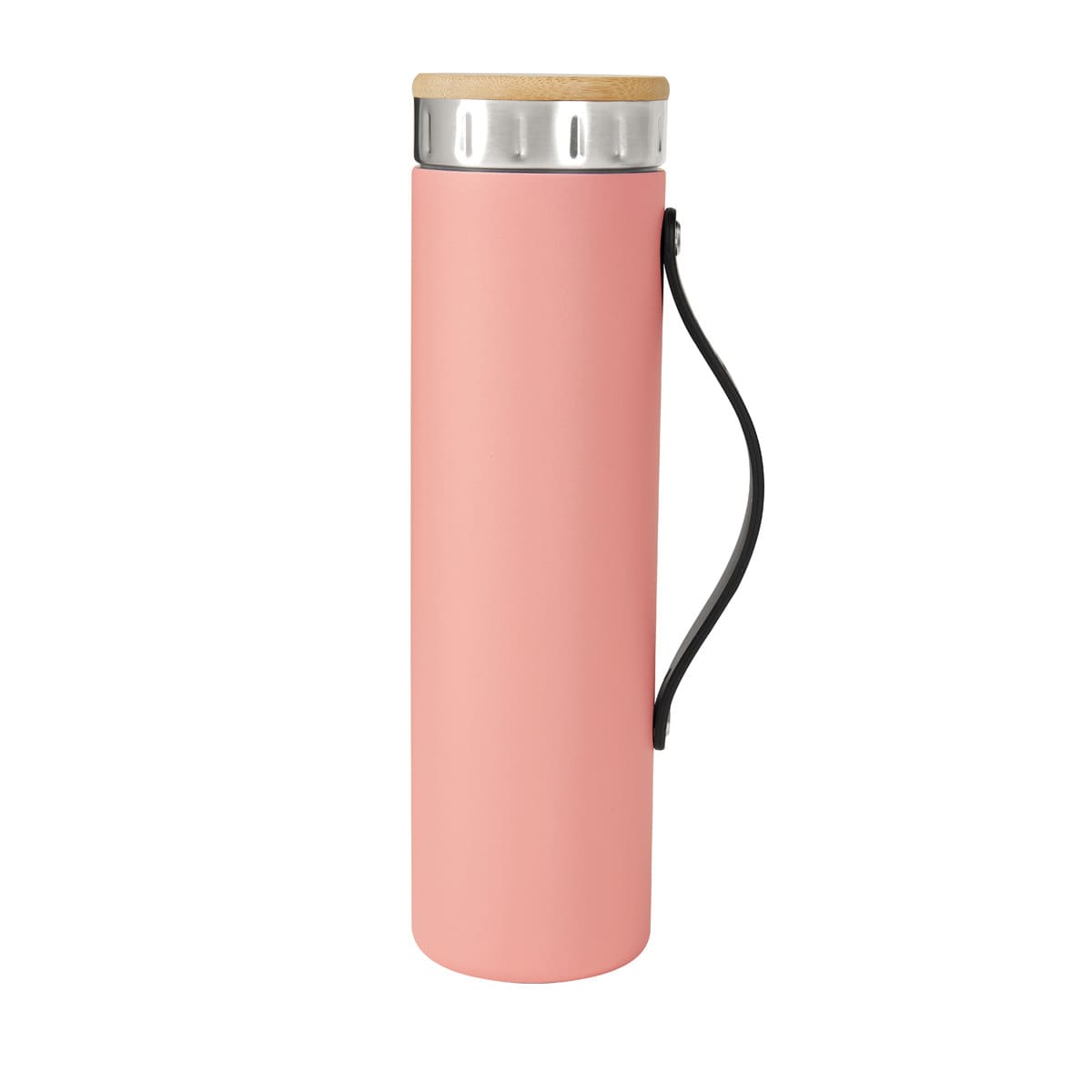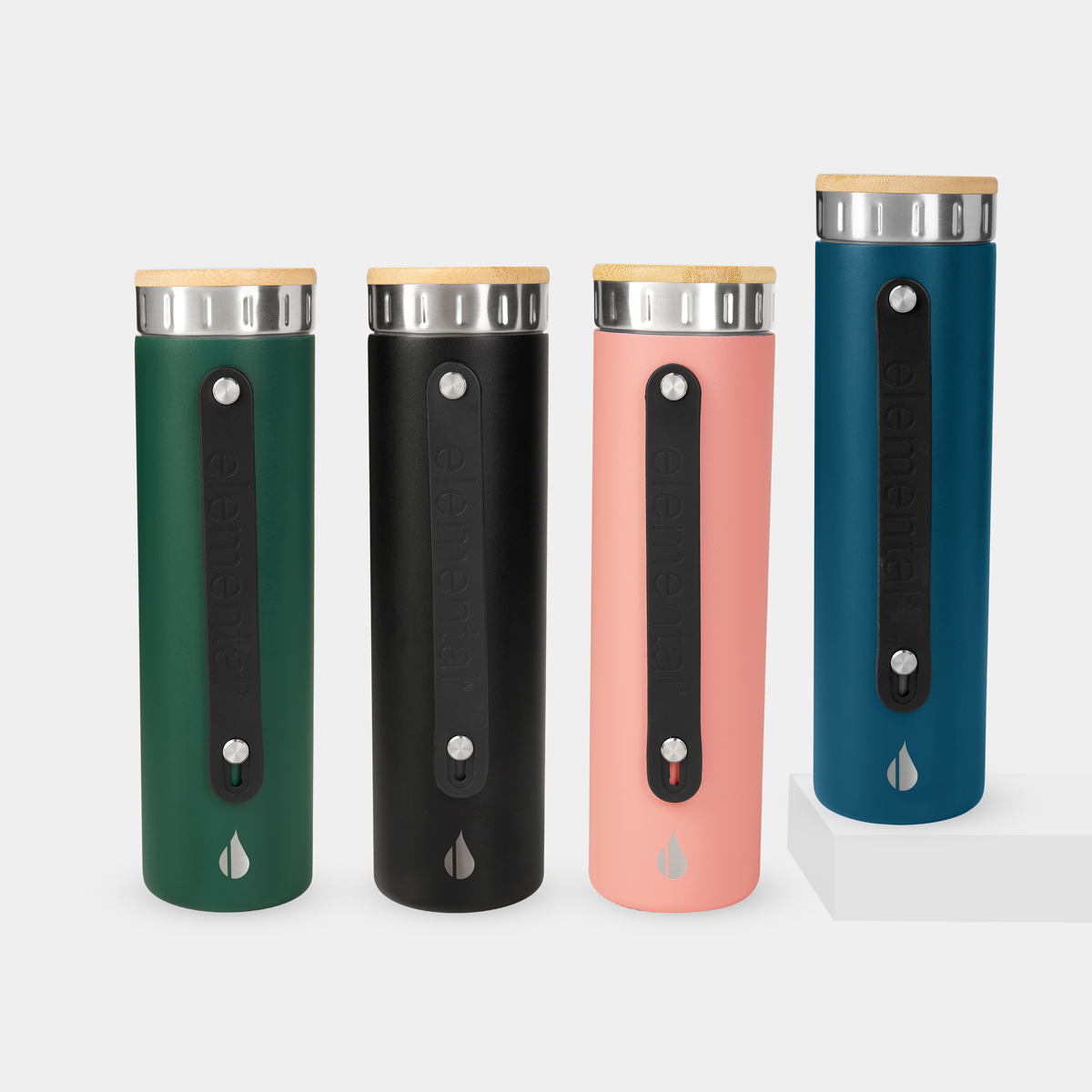 Tecnología TrueBarrier™ que usa aislamiento de triple pared. Doble pared de acero inoxidable y una capa de revestimiento de cobre. Cerrado al vacío. Material BPA free. Tapa de bambú. Contiene filtro de acero inoxidable. Banda de silicón ajustable y removible. Terminado rugoso. Base antiderrapante. Mantiene temperatura caliente 12 hrs y fría 24 hrs aproximadamente. Incluye caja individual.