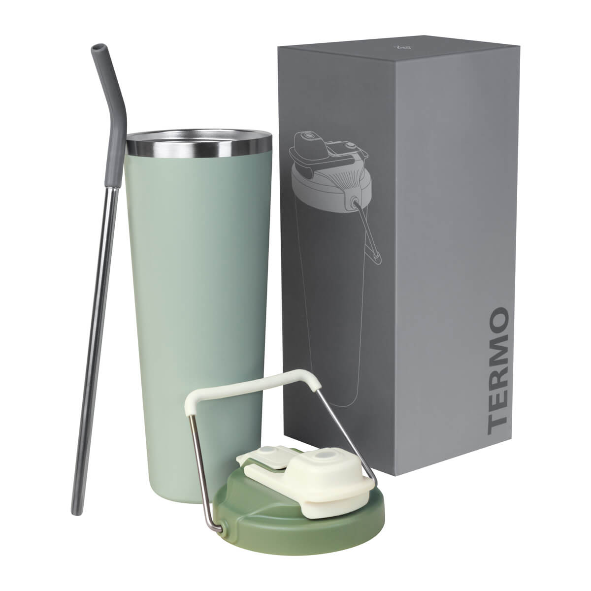 Termo doble pared. Cerrado al vacío. Pared interna y externa acero inoxidable. Cuerpo con terminado rugoso. Tapa de plástico con sistema de rosca y doble sobretapa con cierre push, una con boquilla para beber y otra con ranura para popote. Agrega un asa metálica con recubrimiento de silicón para llevarlo contigo a todos lados. Mantiene la temperatura caliente por 4 hrs y la temperatura fría por 8 hrs. Capacidad de 25 Oz. Base de 7 cm de diámetro. Incluye caja individual.