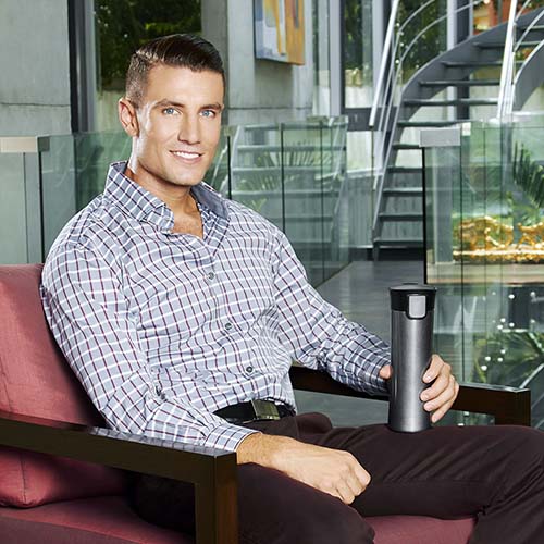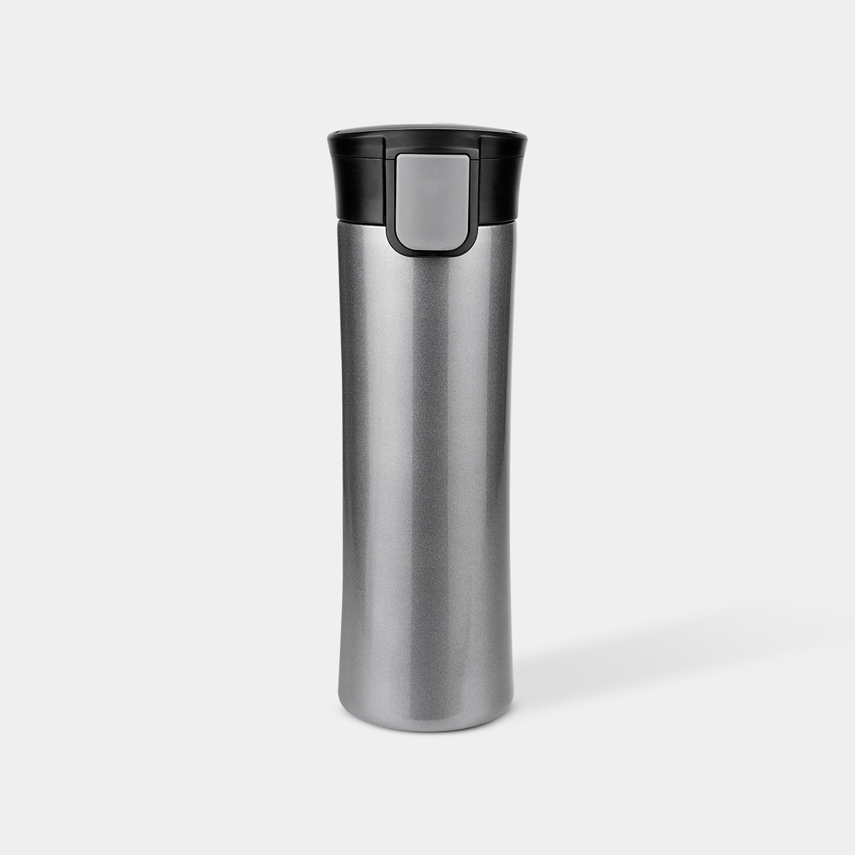 Doble pared. Cerrado al vacío. Pared interna y externa acero inoxidable. La tapa incluye botón pulsador para abrir y cerrar con sistema desmontable. Mantiene temperatura caliente 6 hrs y temperatura fría 8 hrs aproximadamente. Incluye caja individual.