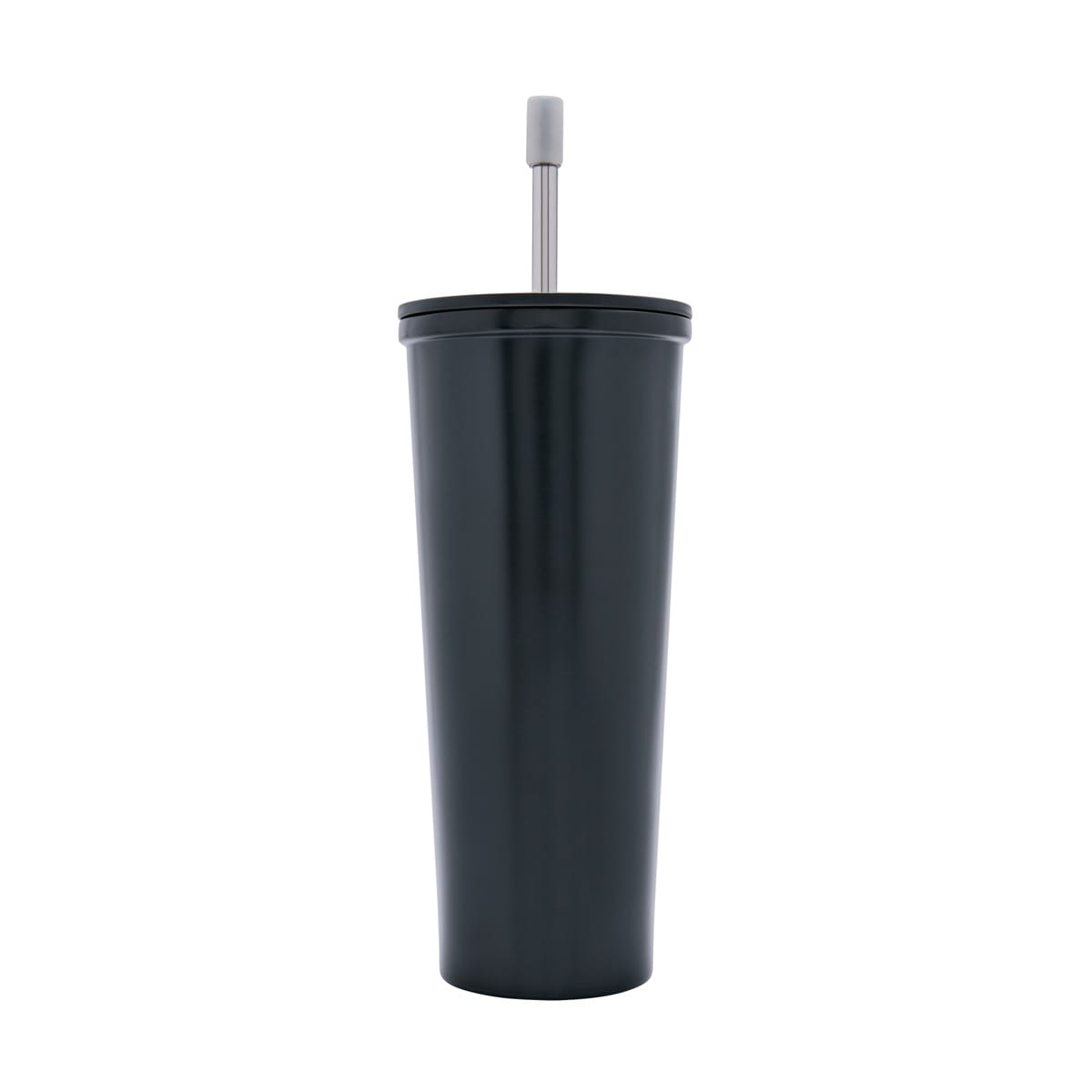 Doble pared. Cerrado al vacío. Pared interna y externa de acero inoxidable. Tapa de metal con plástico y cierre de rosca. Mantiene temperatura caliente 8 hrs y temperatura fría 10 hrs aproximadamente. Incluye popote metálico con boquilla de silicón. Caja individual incluida.