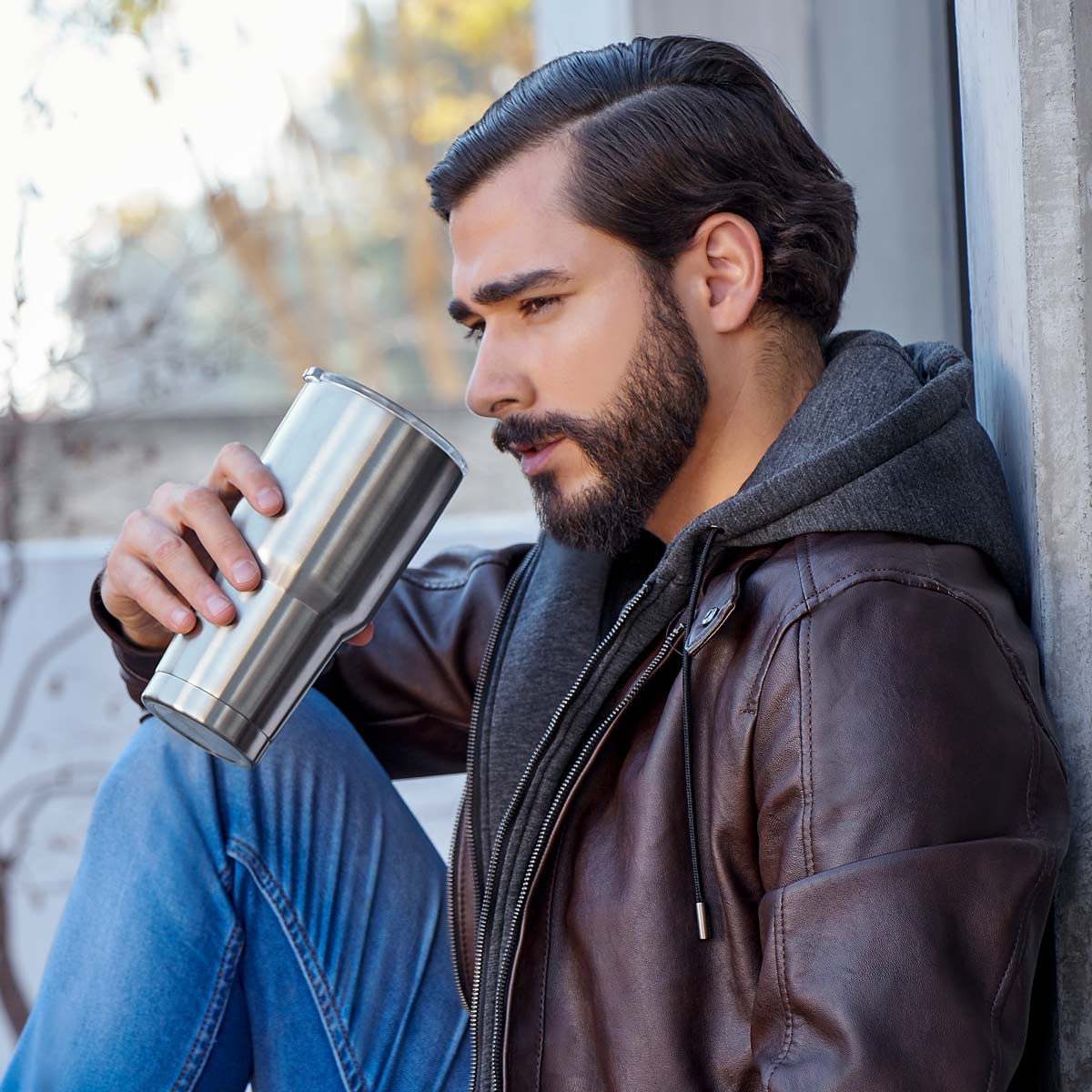 Doble pared. Cerrado al vacío. Pared interna y externa acero inoxidable.Tapa de plástico con válvula de seguridad. Mantiene temperatura caliente 6 hrs y temperatura fría 8 hrs aproximadamente. Incluye caja individual.