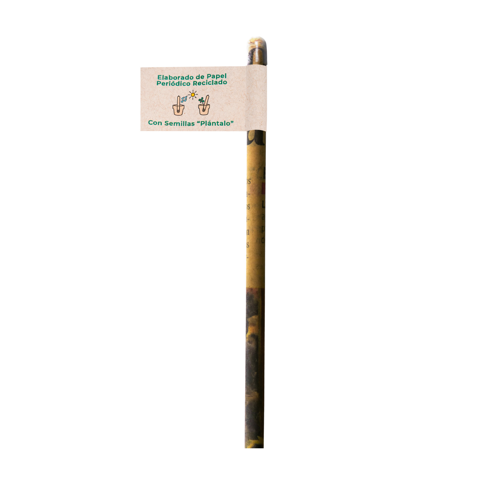 Lápiz ecológico fabricado con papel de periódico reciclado y semillas encapsuladas para cultivo. Al finalizar su uso, puedes plantarlo y darle una segunda vida, cultivando chía, chile, cilantro, alfalfa, tomate o lenteja. (Nunca tendrás dos iguales).