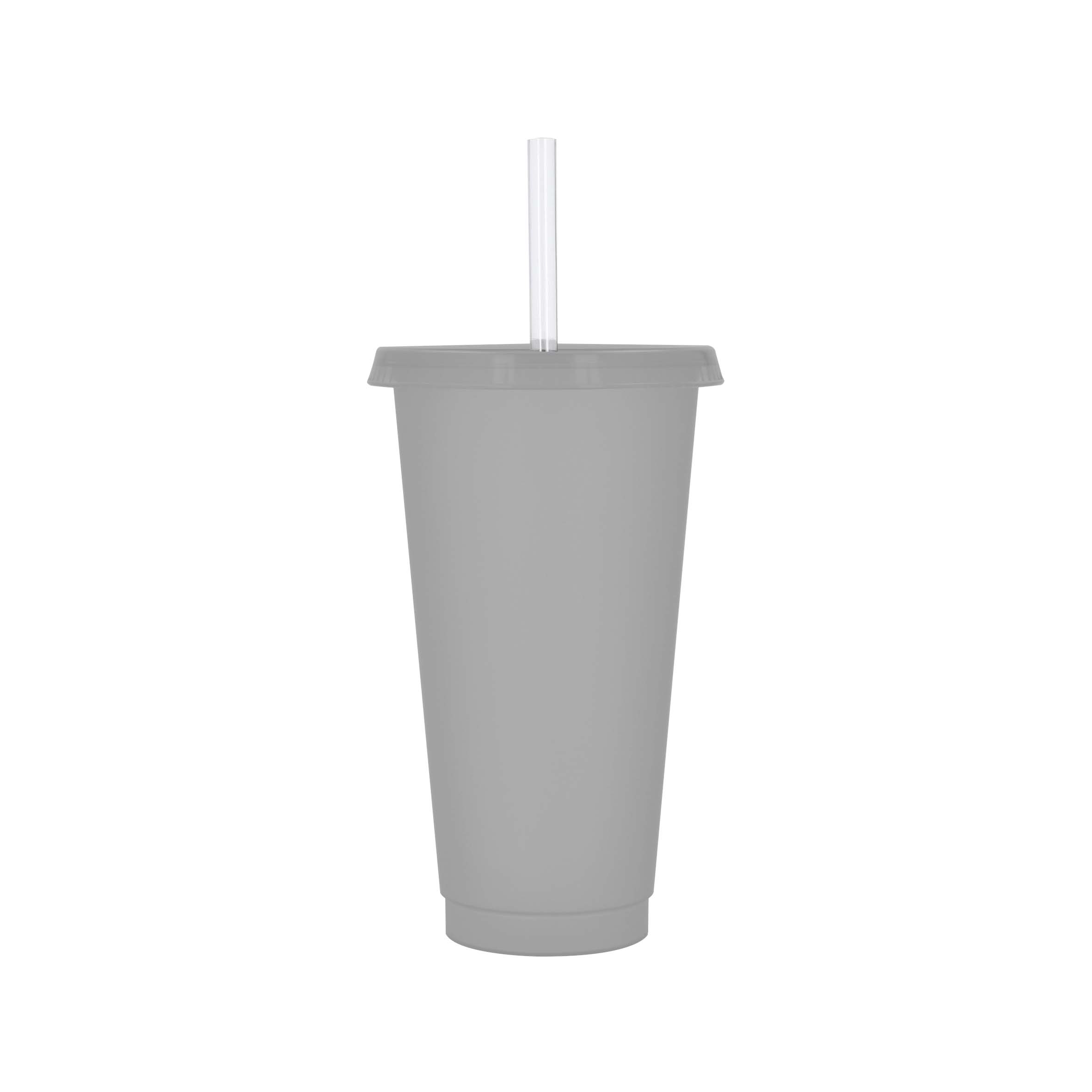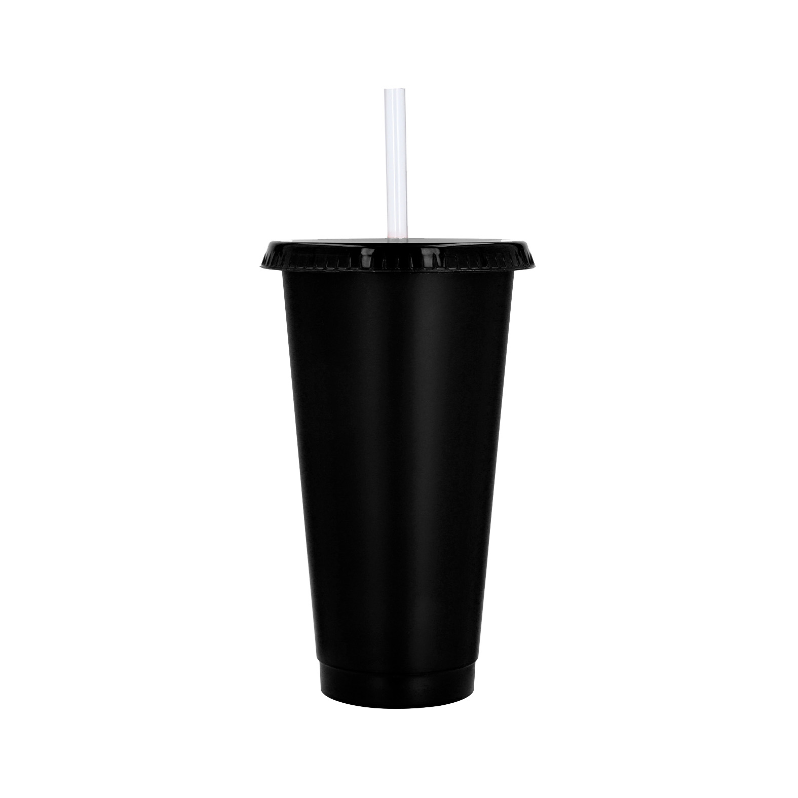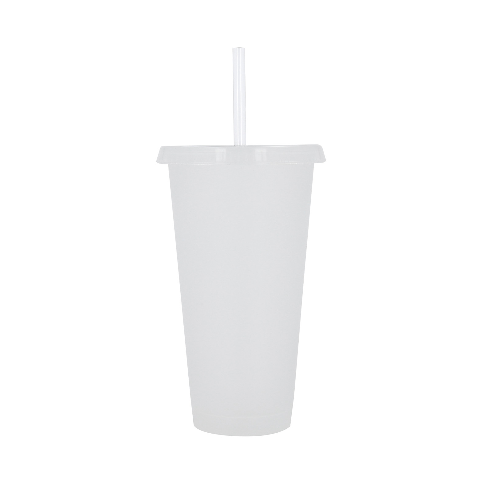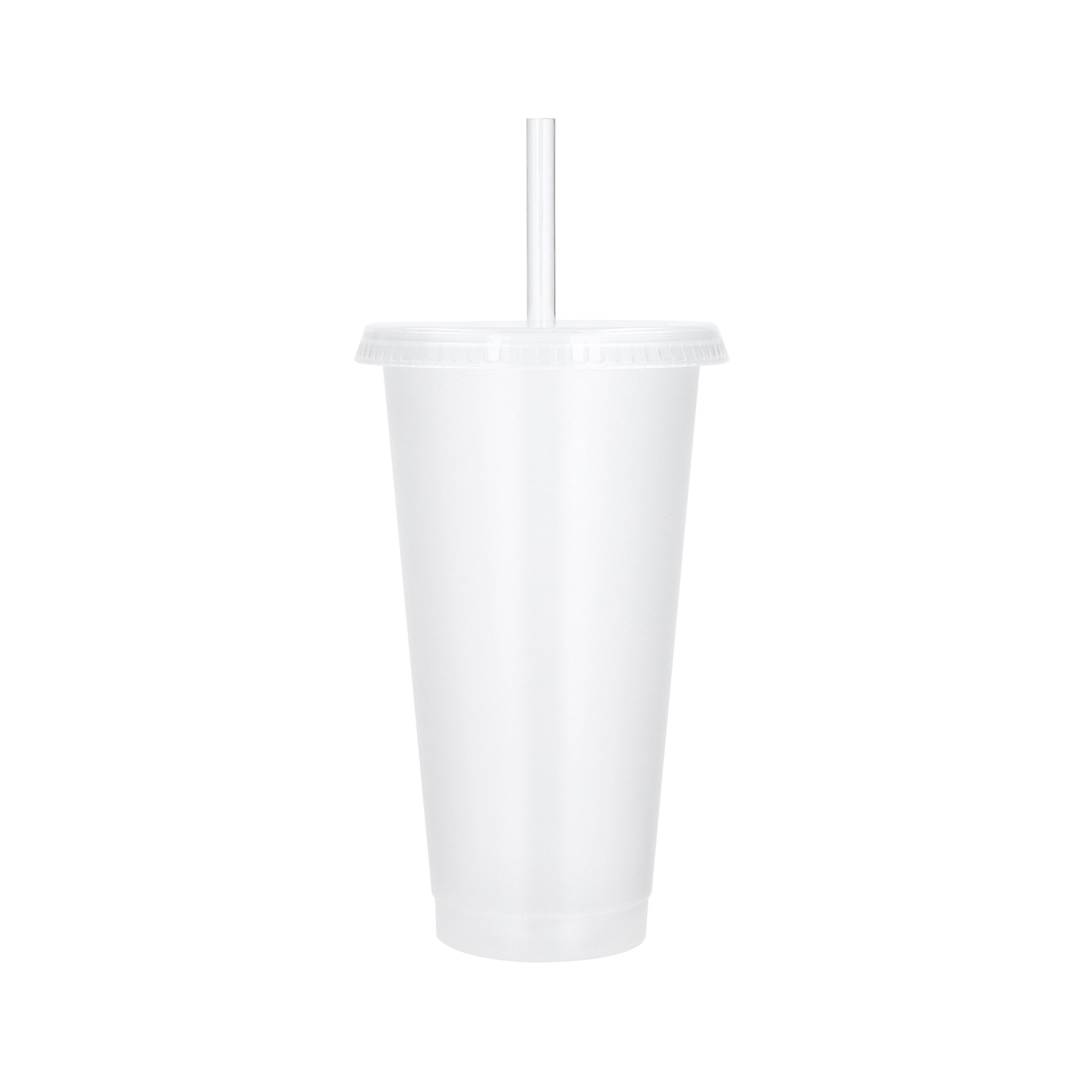 Vaso de plástico transparente con tapa traslúcida. (Incluye popote).