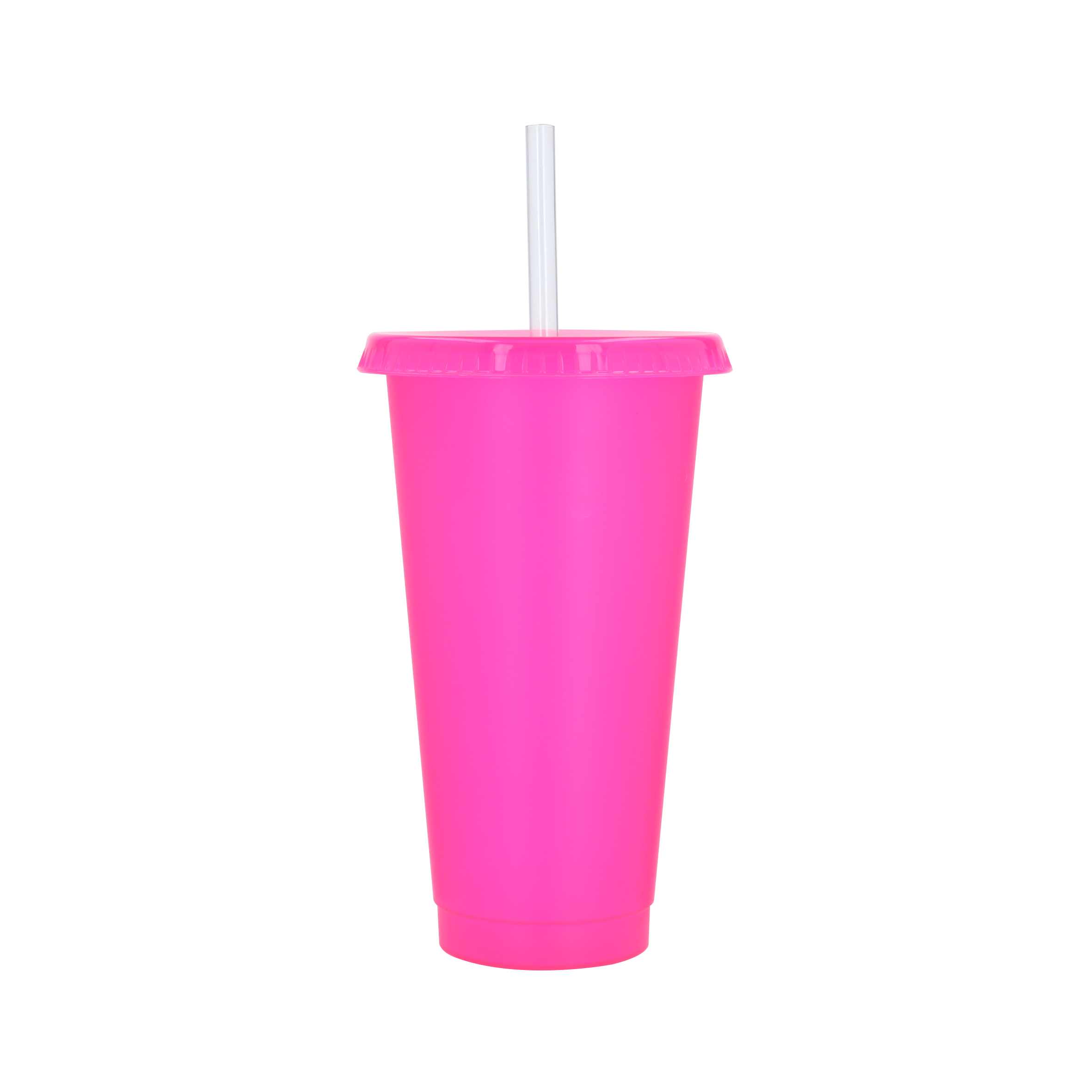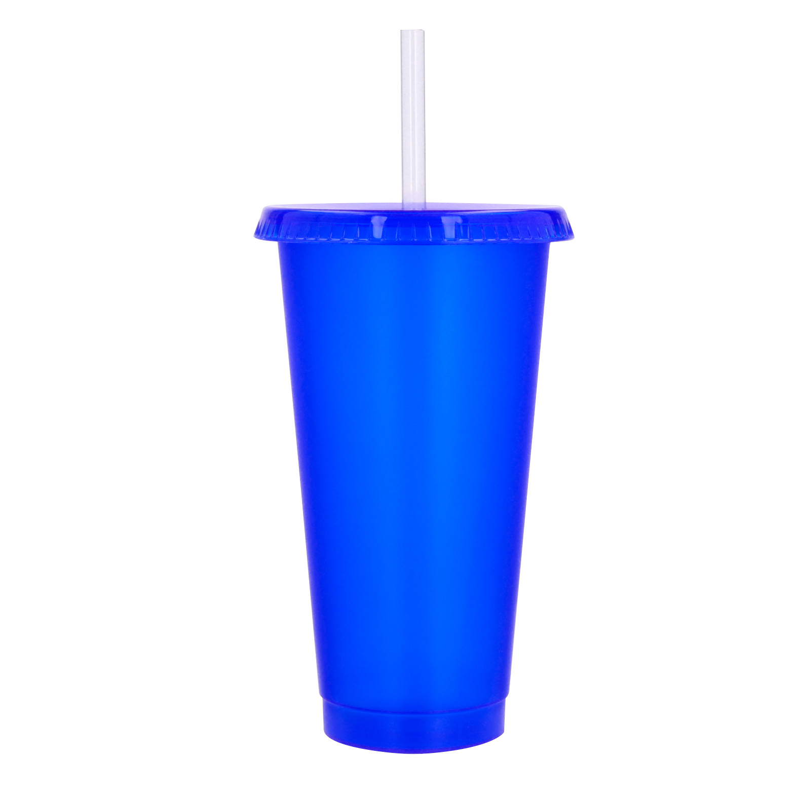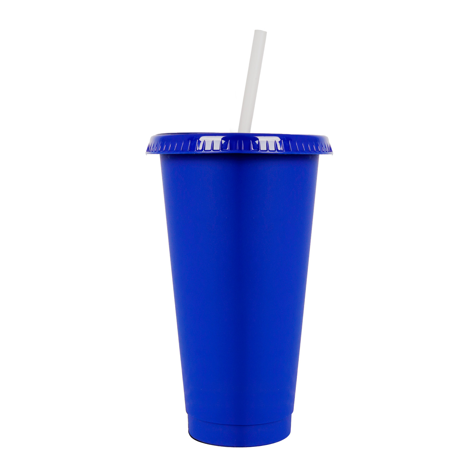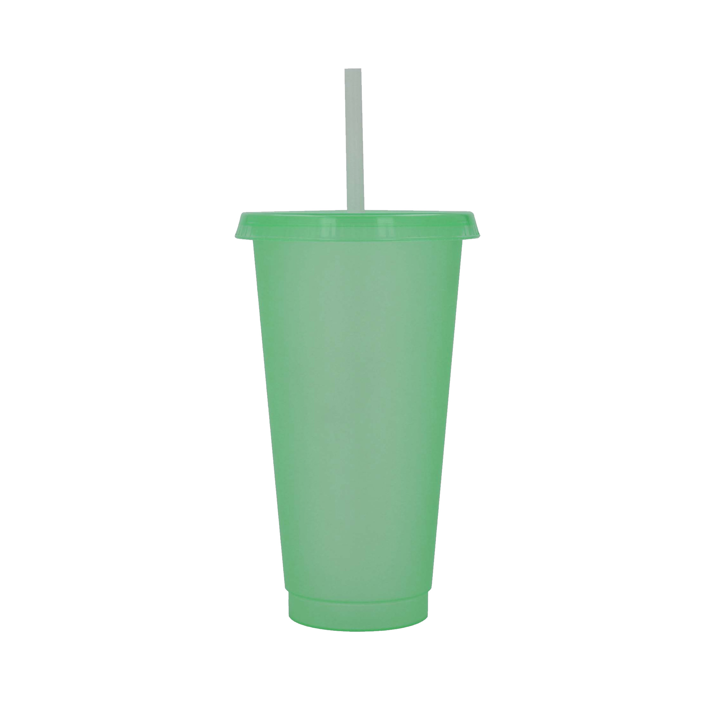 Vaso de plástico transparente con tapa traslúcida. (Incluye popote).