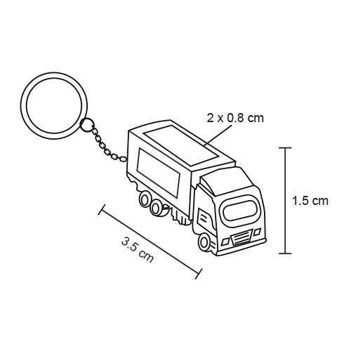 Llavero metálico en forma de tráiler 3D y aro reforzado. Incluye caja.