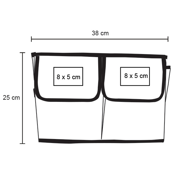 Organizador plegable para auto. Con dos compartimientos, 2 bolsas exteriores, 4 bolsas de malla y asas.